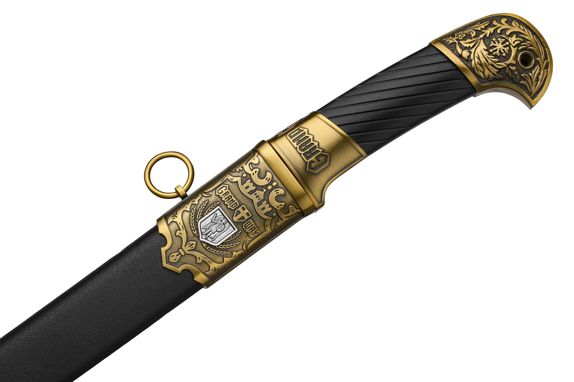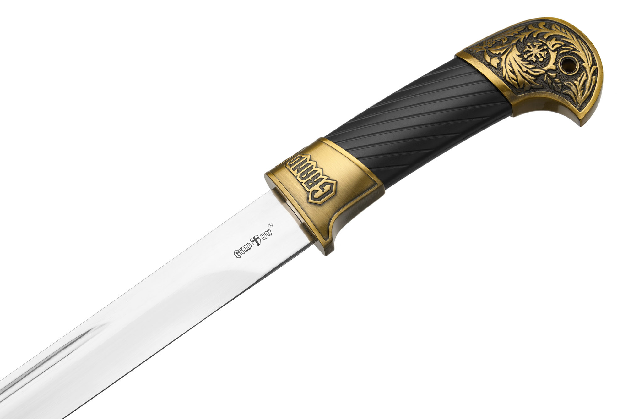 Особливий цікавим є оформлення ефесу, на який нанесено зображення архангела Михайла. Додатковим елементом декору є і гарно вписаний у загальний дизайн логотип Grand Way.