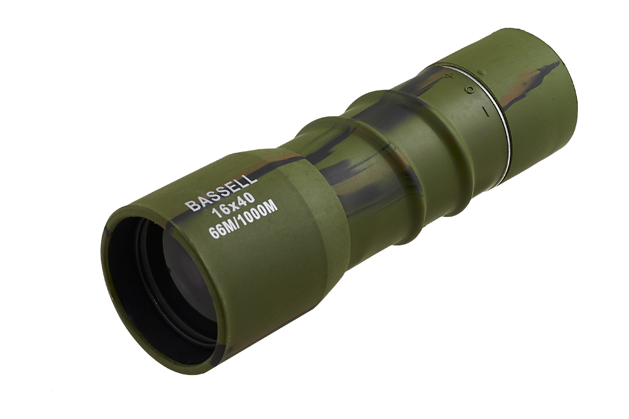 Модель 16x40 – BASSELL (green) имеет прочный прорезиненный корпус, а в качестве оптики в ней используется просветлённое оптическое стекло.