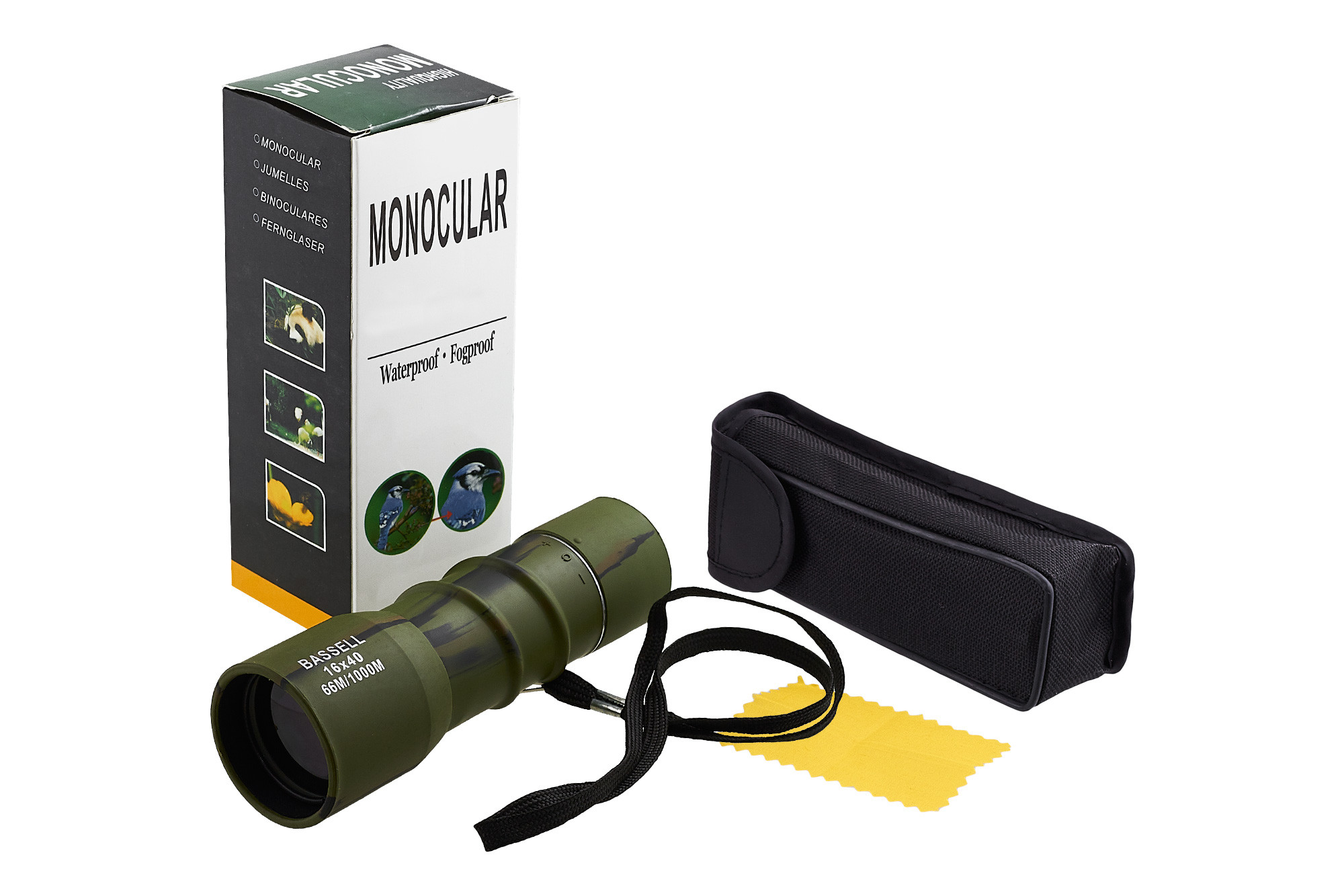 Главное достоинство монокуляра в сравнении с биноклем – его компактность. Модель 16x40 – BASSELL (green) весит всего 190 грамм и, при помощи входящего в комплект чехла, без проблем разместится на поясе. Она не менее легко поместится и в походном рюкзаке или бардачке автомобиля.