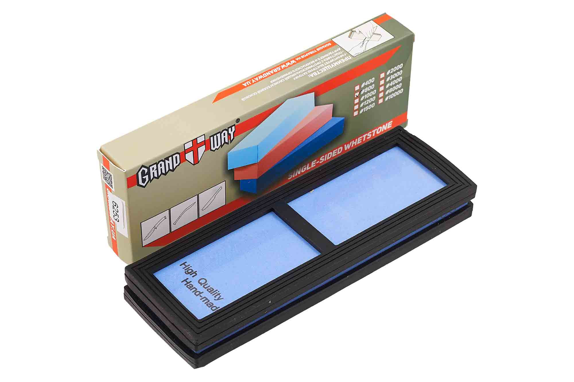 Примечание: Grand Way представляет целую линейку электрокорундовых точильных камней в подобном исполнении. Камни этой серии обладают коэффициентами шероховатости от 400 до 8000 grit, а значит, позволяют подобрать набор для идеальной заточки самого разнообразного режущего инструмента на все случаи жизни. Познакомиться поближе с ассортиментом точильных камней от Grand Way можно на соответствующей странице официального сайта торговой марки.