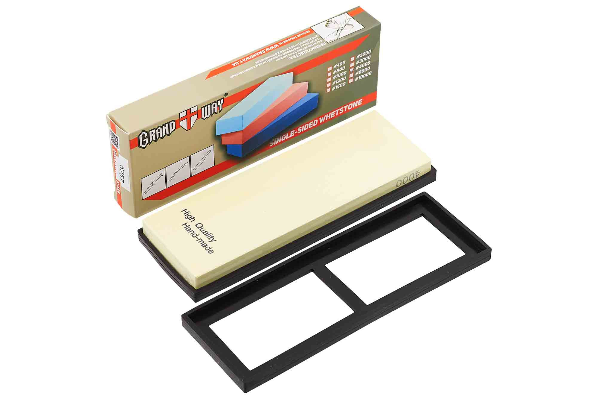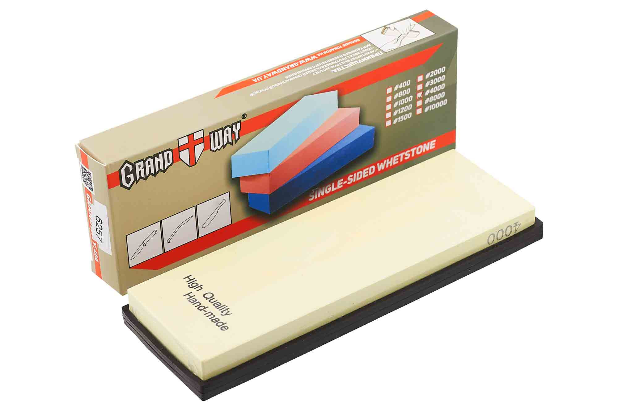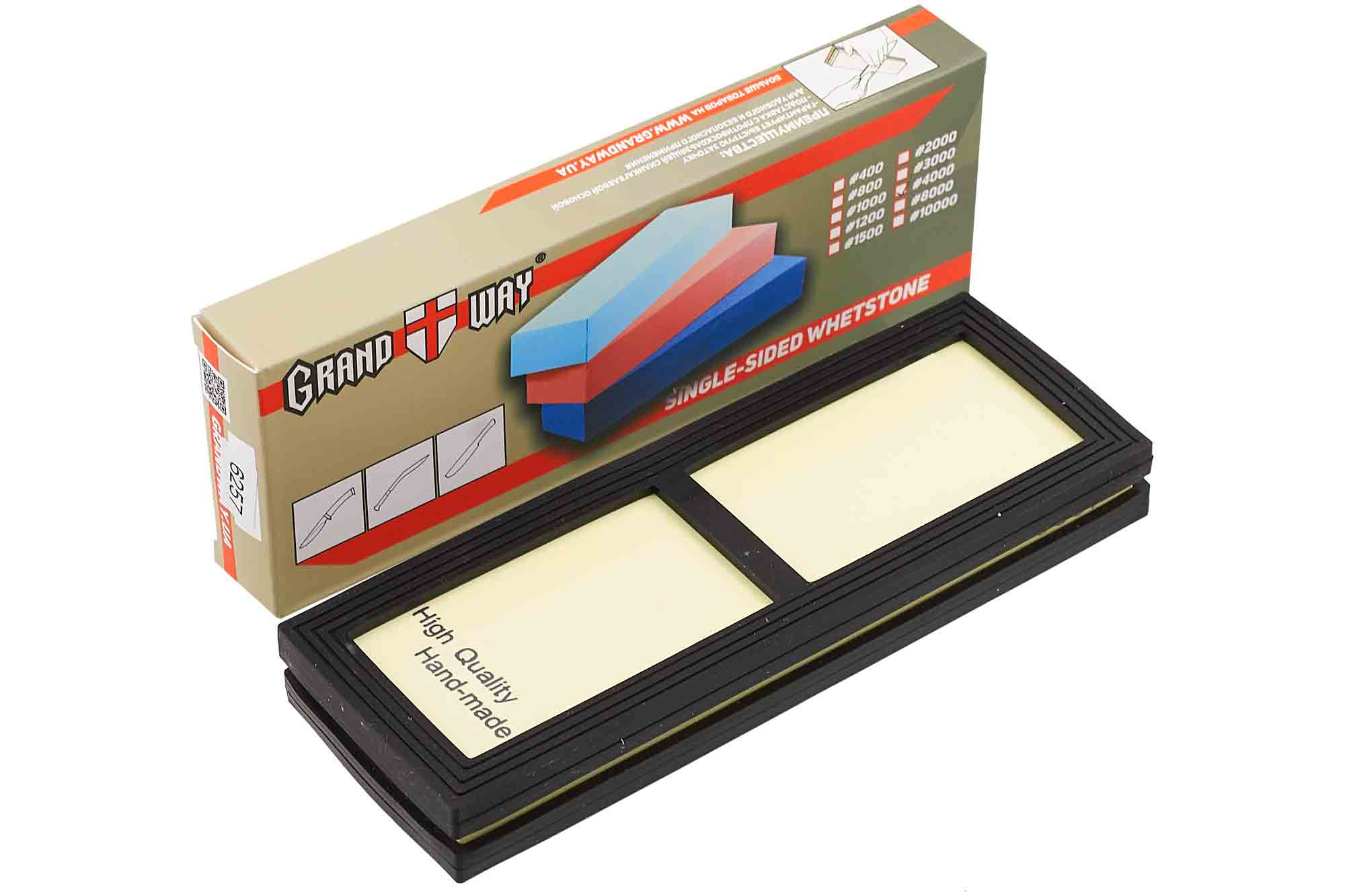 Примечание: Grand Way представляет целую линейку электрокорундовых точильных камней в подобном исполнении. Камни этой серии обладают коэффициентами шероховатости от 400 до 8000 grit, а значит, позволяют подобрать набор для идеальной заточки самого разнообразного режущего инструмента на все случаи жизни. Познакомиться поближе с ассортиментом точильных камней от Grand Way можно на соответствующей странице официального сайта торговой марки.