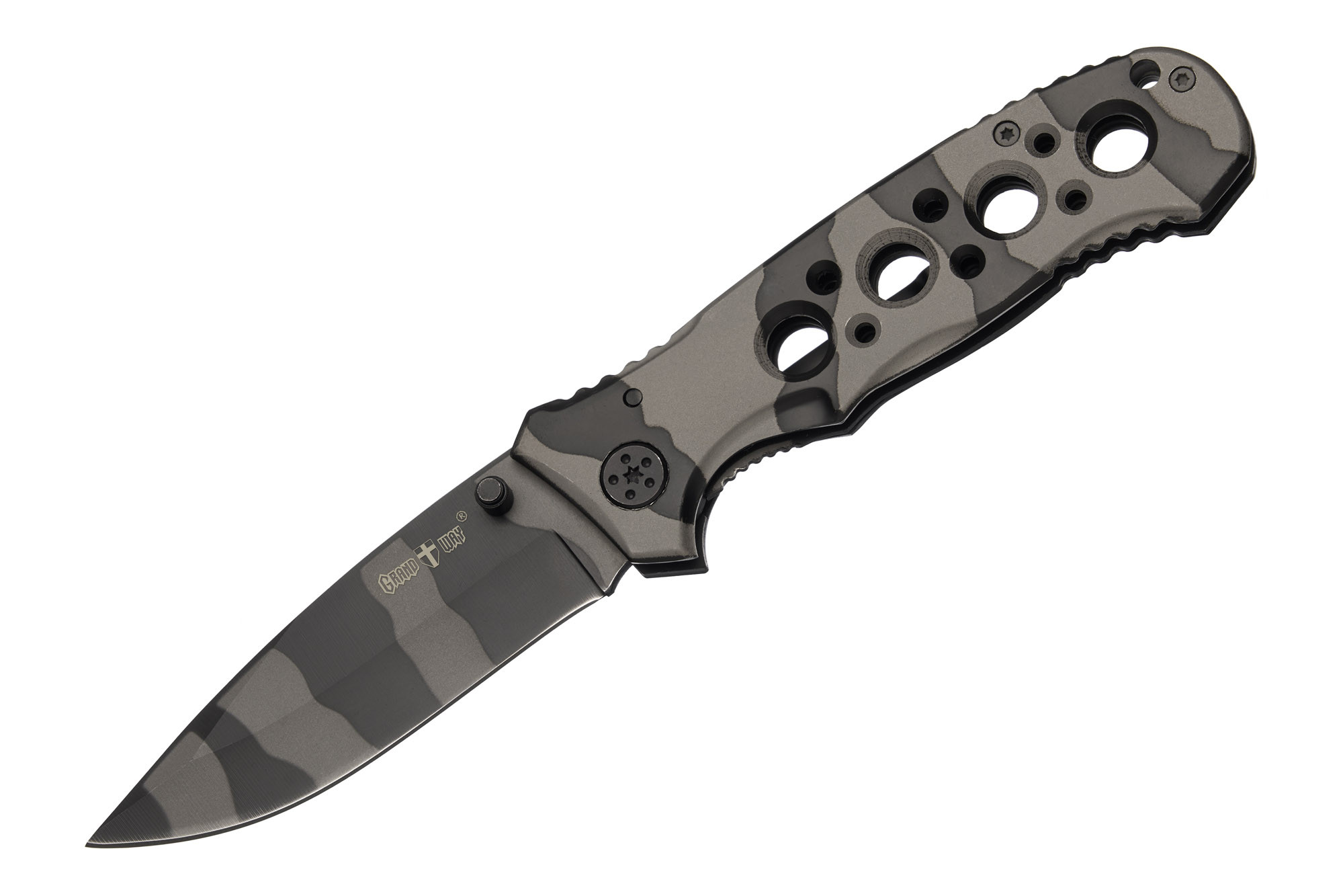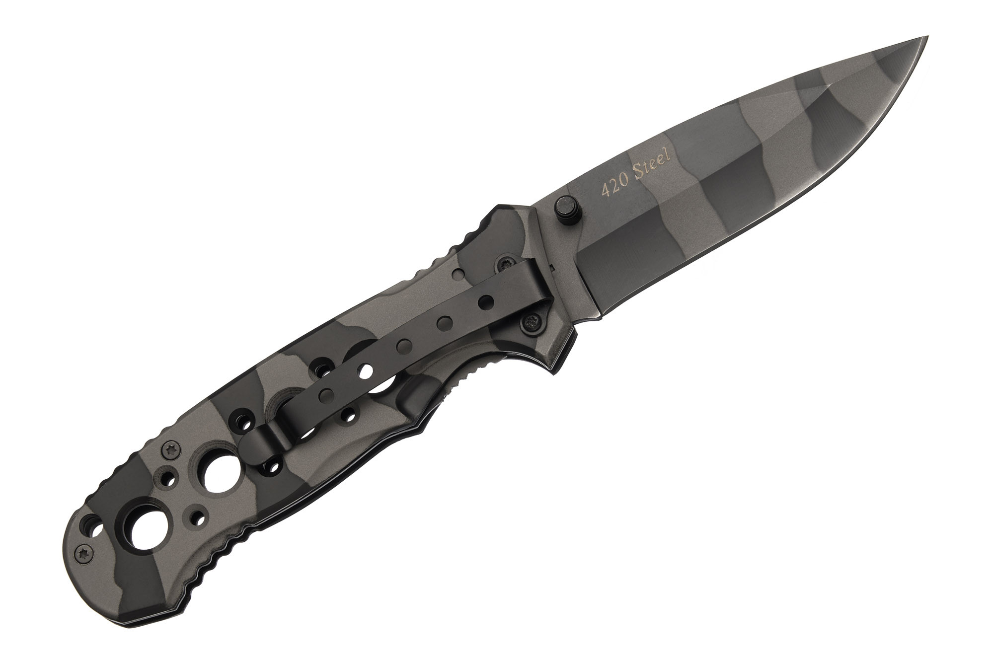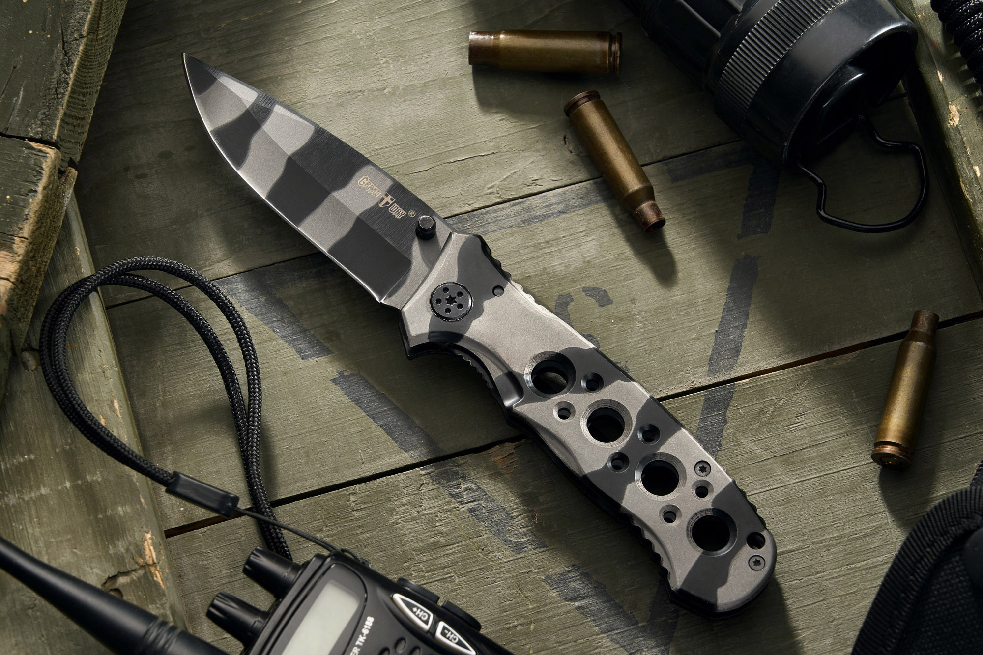 - завдяки шпенькам на клинку, ніж швидко та легко розкривається однією рукою;