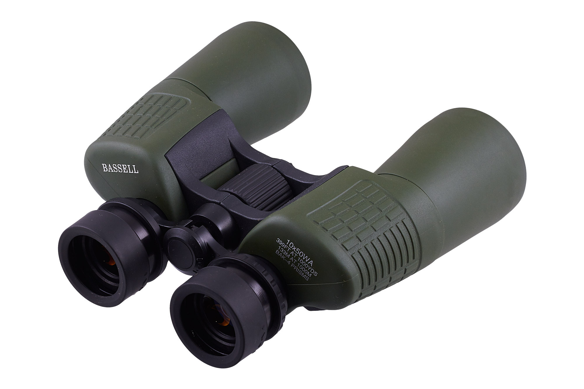 10х50 BASSELL WA – выполненный в хаки-расцветке, широкоугольный бинокль, в котором оптимально сочетаются большой диаметр объективов в 50 миллиметров и фиксированное 10-кратное увеличение. Маркировка WA означает, что бинокль является широкоугольным и обладает большим полем обзора.