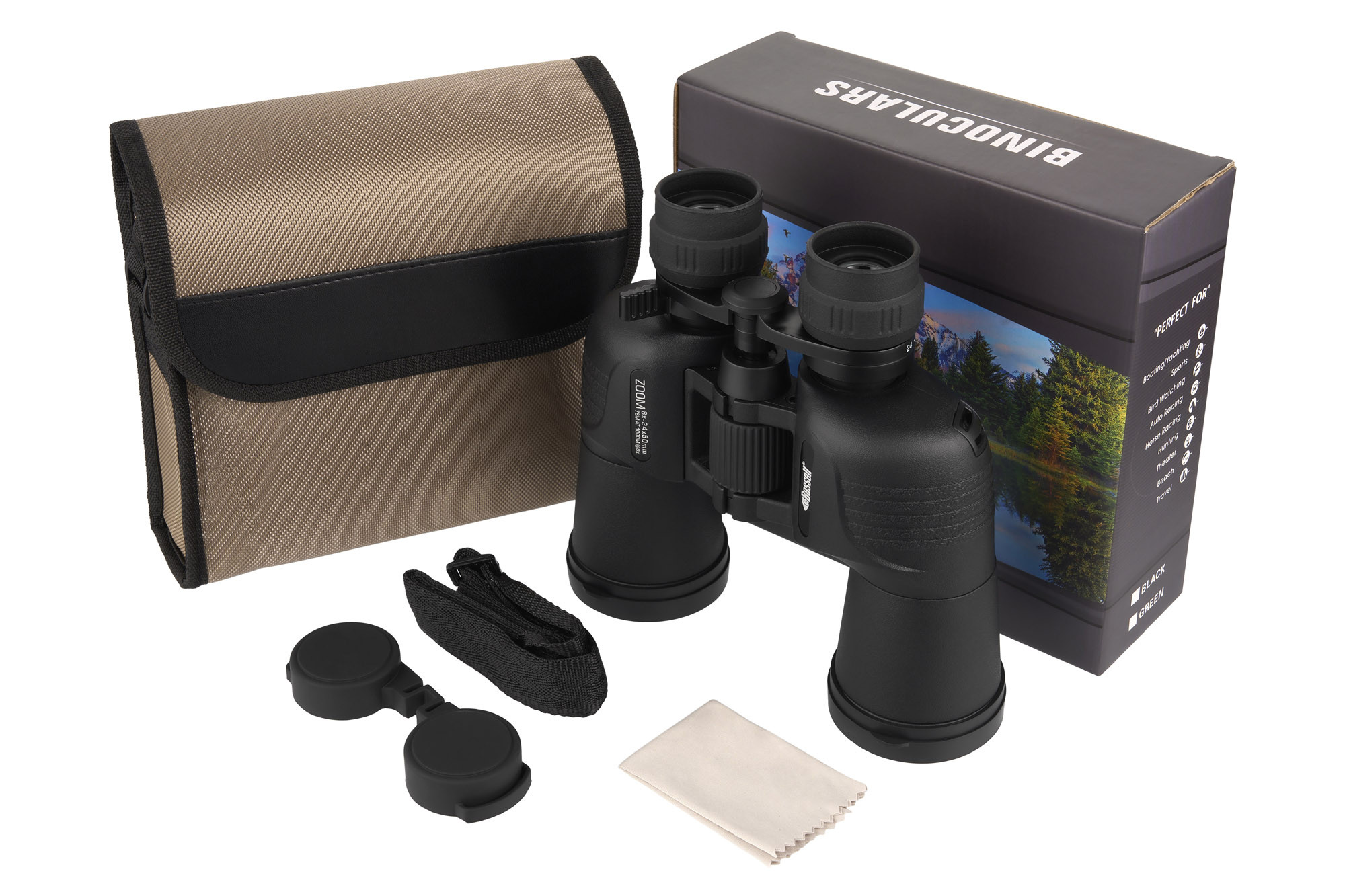 Бінокль 8-24x50 BASSELL K9 має змінну кратність (від 8х до 24х), якісну оптику та зручний дизайн, що робить його чудовим вибором для вживання у самих різних умовах – від походів на природі до перегляду спортивних подій.
