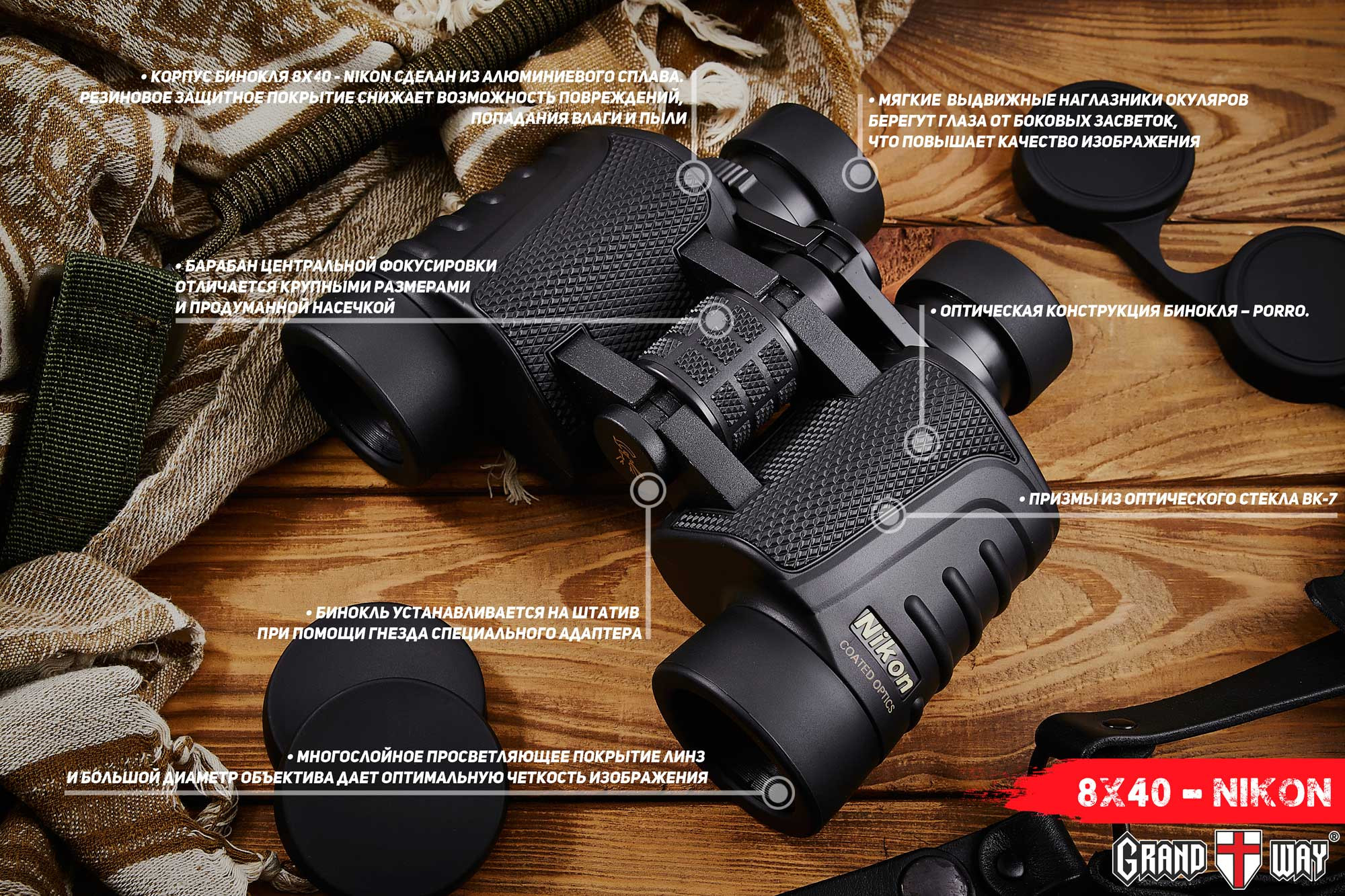 | Комплектация: | Бинокль, шейный ремень, салфетка, инструкция, защитные крышки |