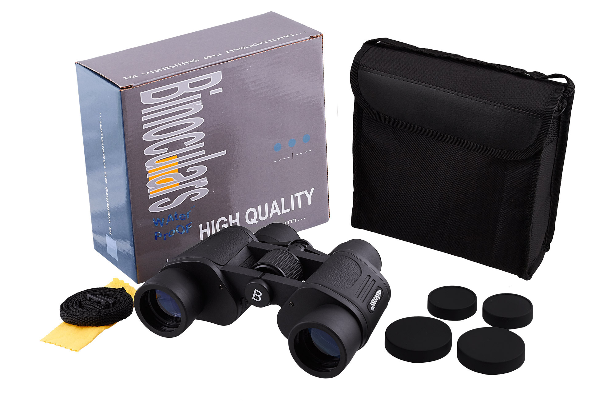 В комплекте с биноклем поставляются мягкая сумка для переноски, шейный ремешок, защитные крышки для линз и салфетка для оптики