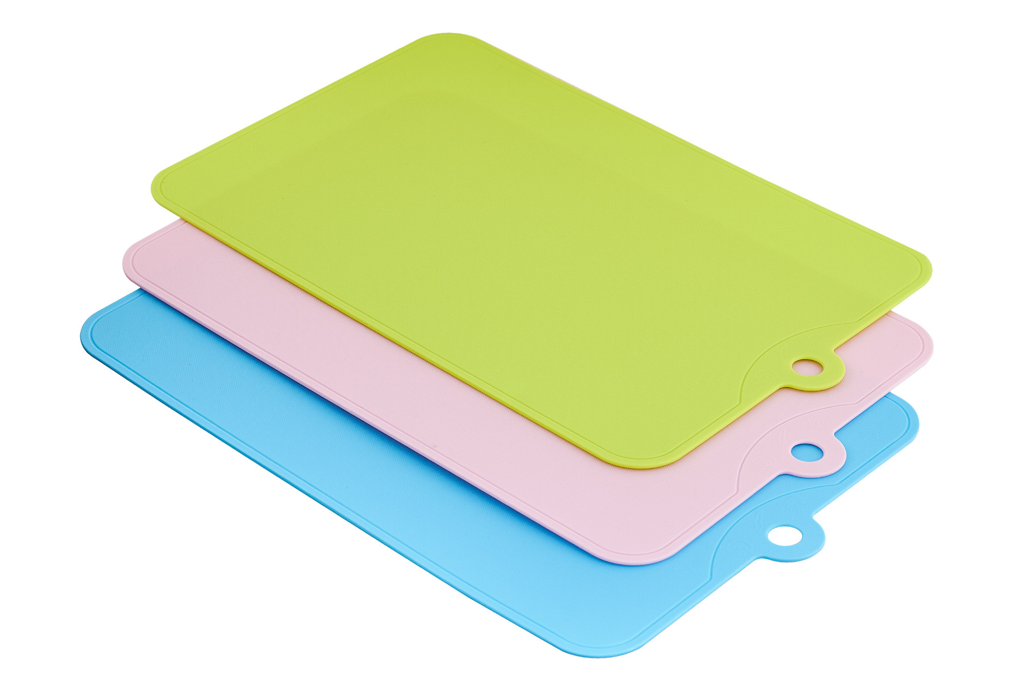 Кстати, доски выполняются в трёх разных вариантах яркой окраски. Это позволит вам никогда не перепутать доску для хлеба с доской для мяса или зелени! Такие наборы разделочных досок с цветовой кодировкой давно уже используют на своих кухнях профессионалы!