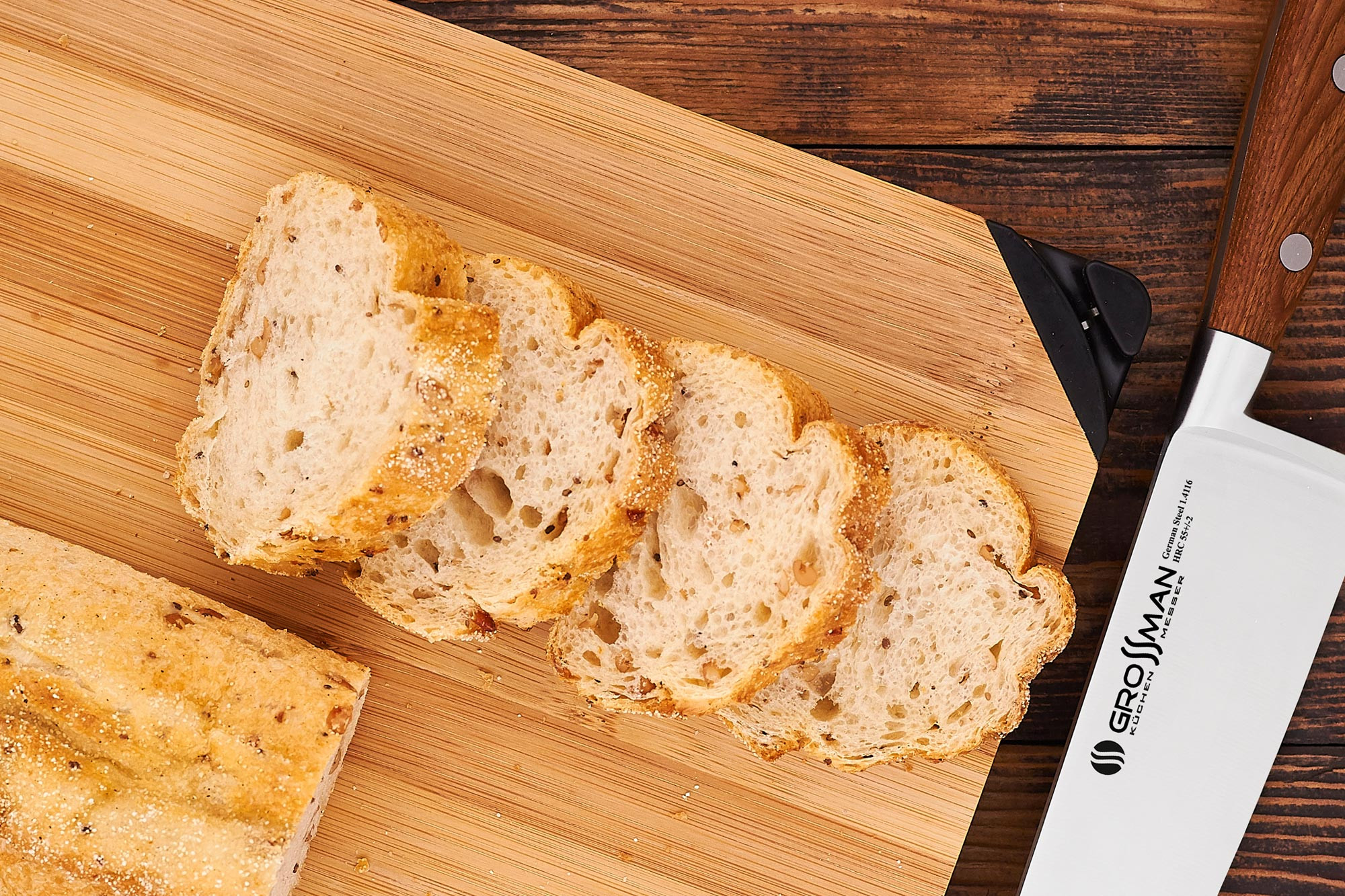Интересной особенностью разделочной доски 0923 T является заточной элемент, смонтированный на одном из её углов. Теперь вы можете, не отрываясь от готовки, буквально на месте подточить притупившийся нож. Попробуйте, это действительно удобно!