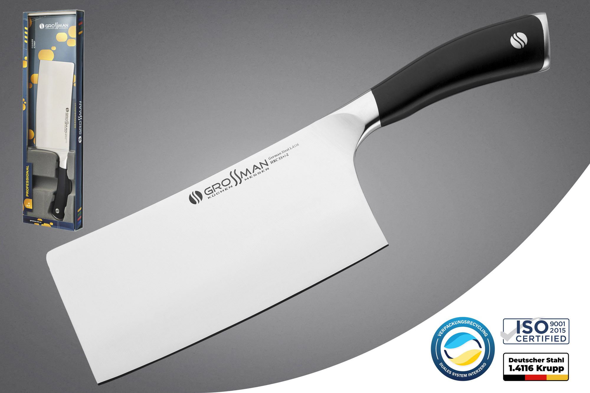 Ножі та клівера зі сталі 1.4116 – приклад справжньої європейської якості. Розумне та надійне вкладення ваших грошей. Ножі серії GROSSMAN ELITE PRO порадують вас у роботі та правильно прослужать вам довгі роки.