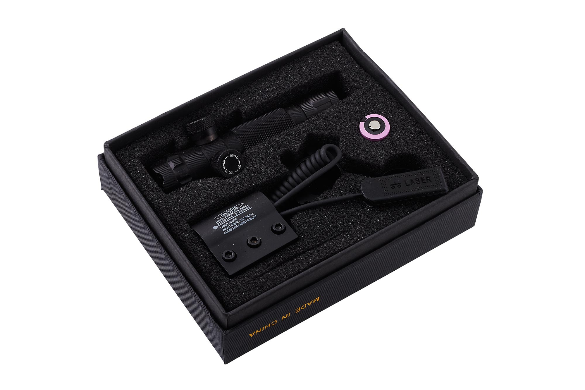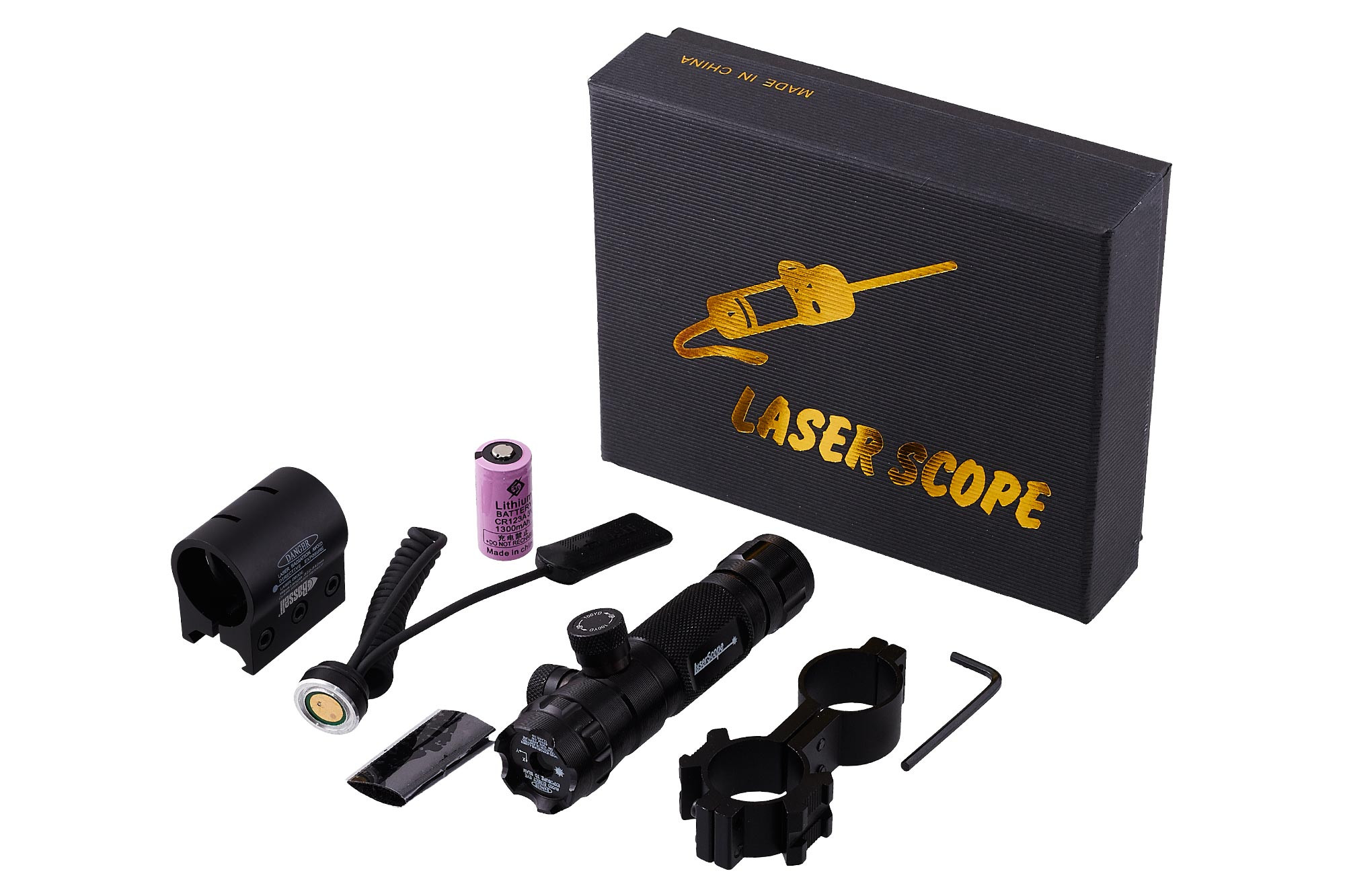 Питается лазерное устройство батареей типа CR123A, идущей в комплекте. Также в набор ЛЦУ JG9/R BASSELL входит выносная кнопка и ключ для установки на оружие.