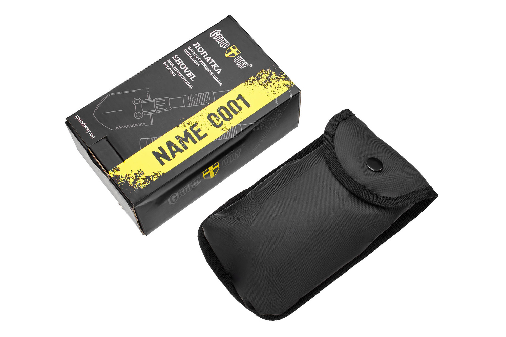 У розібраному стані лопатка Grand Way 0001 легко поміститься у багажнику автомобіля або у ящику для інструментів. При необхідності, на штик лопатки можна надіти міцний тканьовий чохол, що закривається клапаном на кнопці.
