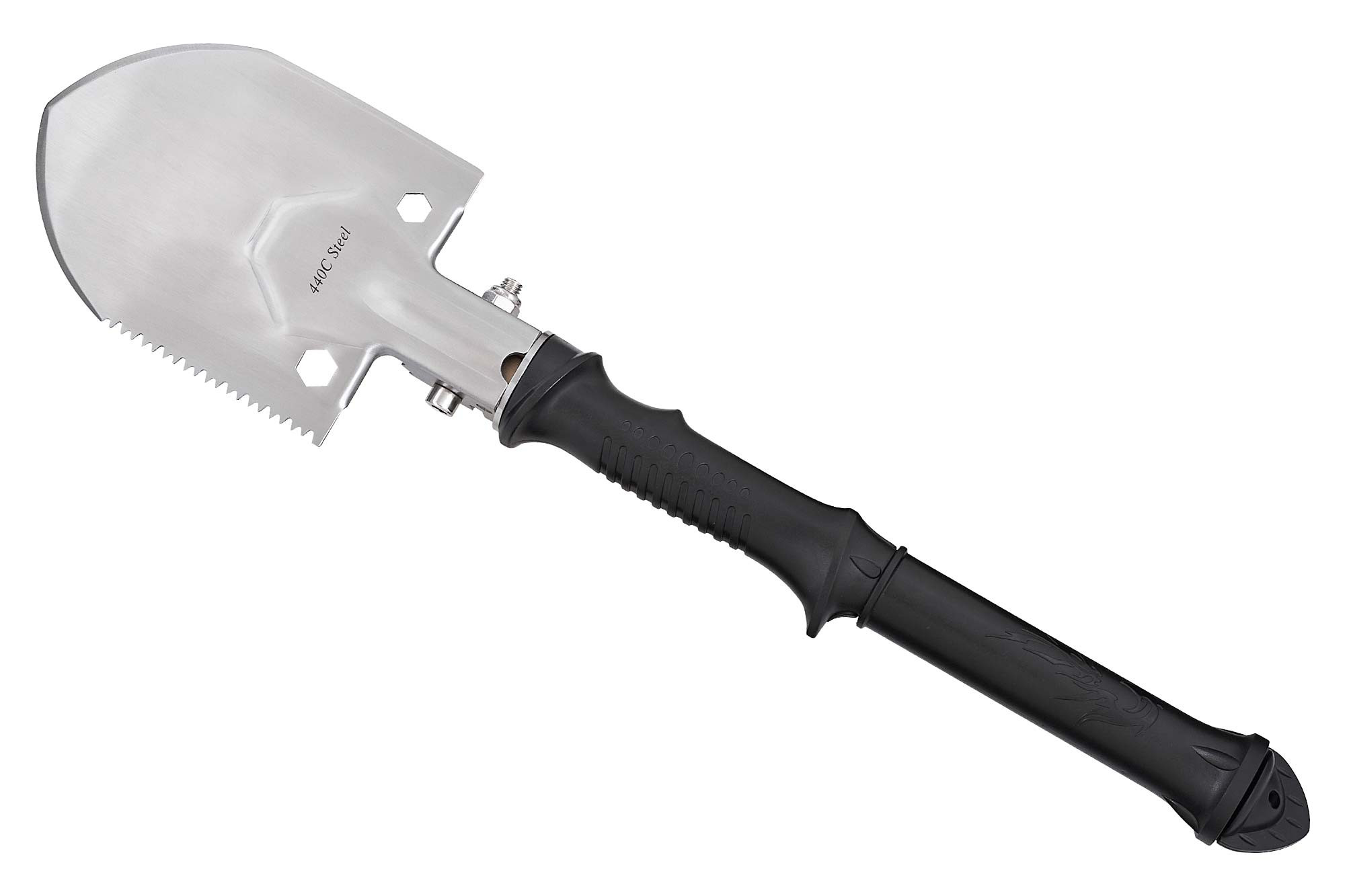Штык и прочный стальной черенок лопатки изготовлены из нержавейки марки 440С. Эта сталь хорошо известна своей прочностью и сопротивляемостью коррозии, поэтому для такого инструмента она подходит как нельзя лучше.
