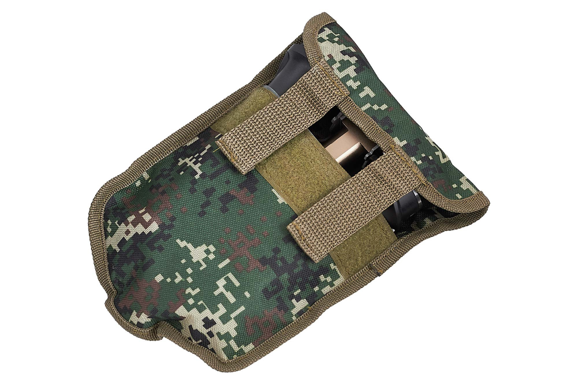 В разобранном состоянии лопатка-мультитул Grand Way 46007 PA занимает совсем немного места. Она легко поместится в багажнике автомобиля или в ящике для инструментов. При необходимости на штык лопатки можно надеть продающийся вместе с ней чехол из плотной ткани наподобие кордуры. Чехол прочно закрывается на застёжки-липучки, а также имеет шлёвки для крепления на поясном ремне.