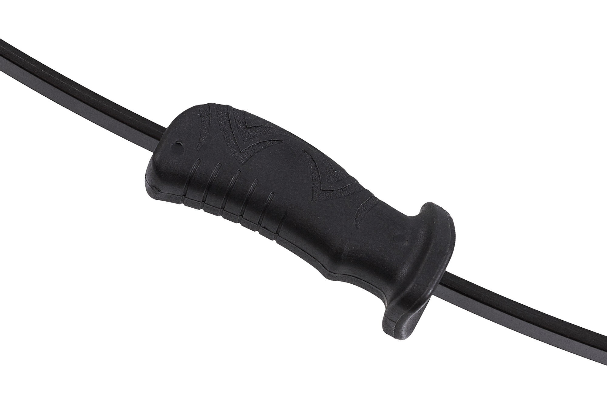 Этот лук традиционной конструкции целиком изготовлен из пластика, а значит, не боится сырости, грязи и чрезвычайно прост в уходе.