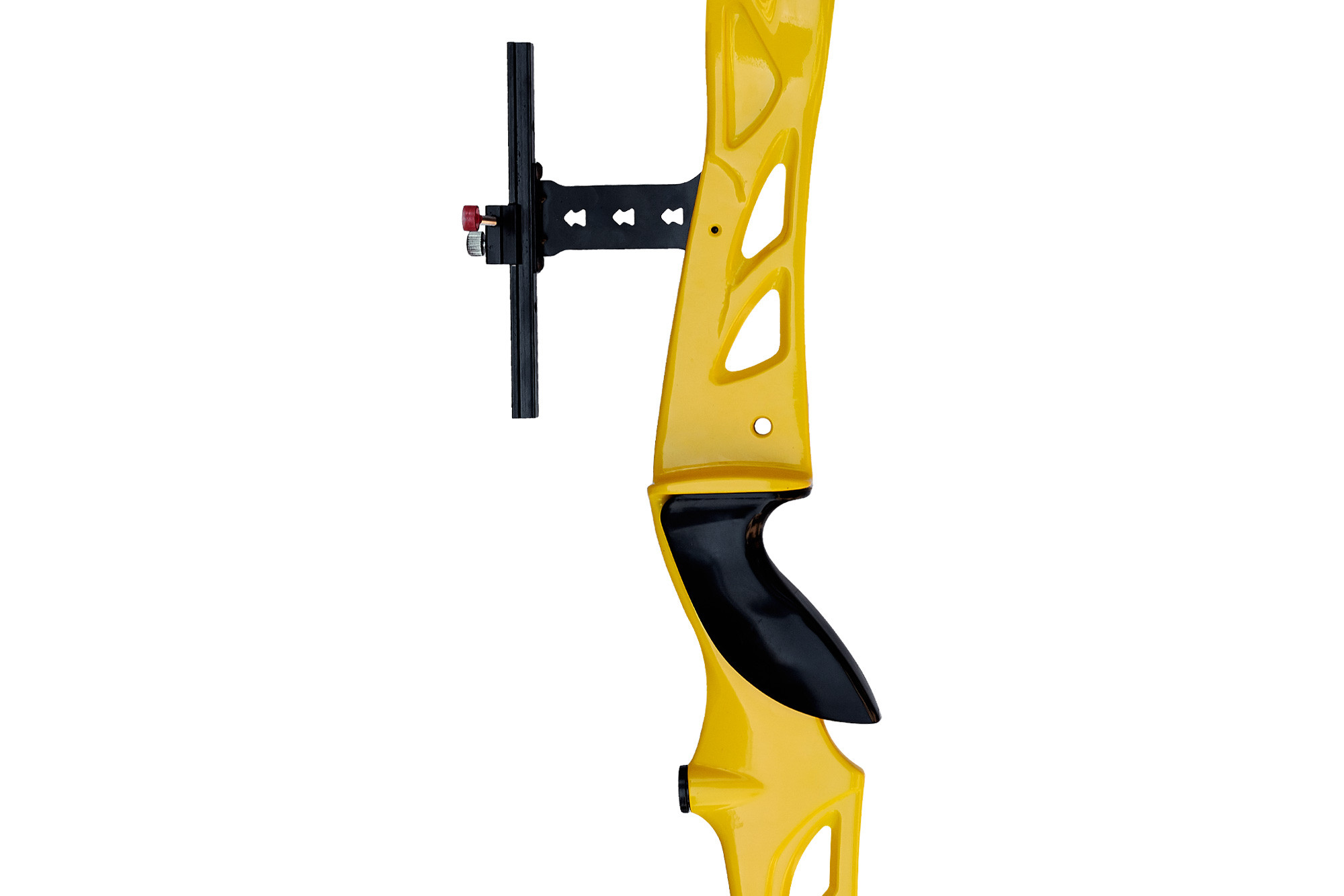 Интересное дополнение к луку 66/24-Yellow-Q – простой прицел, идущий с ним в комплекте. Сделанный из металла и пластика, он не отягощает лук, при этом прост и надежен, а также значительно повышает результативность стрельбы и помогает сконцентрироваться на мишени.