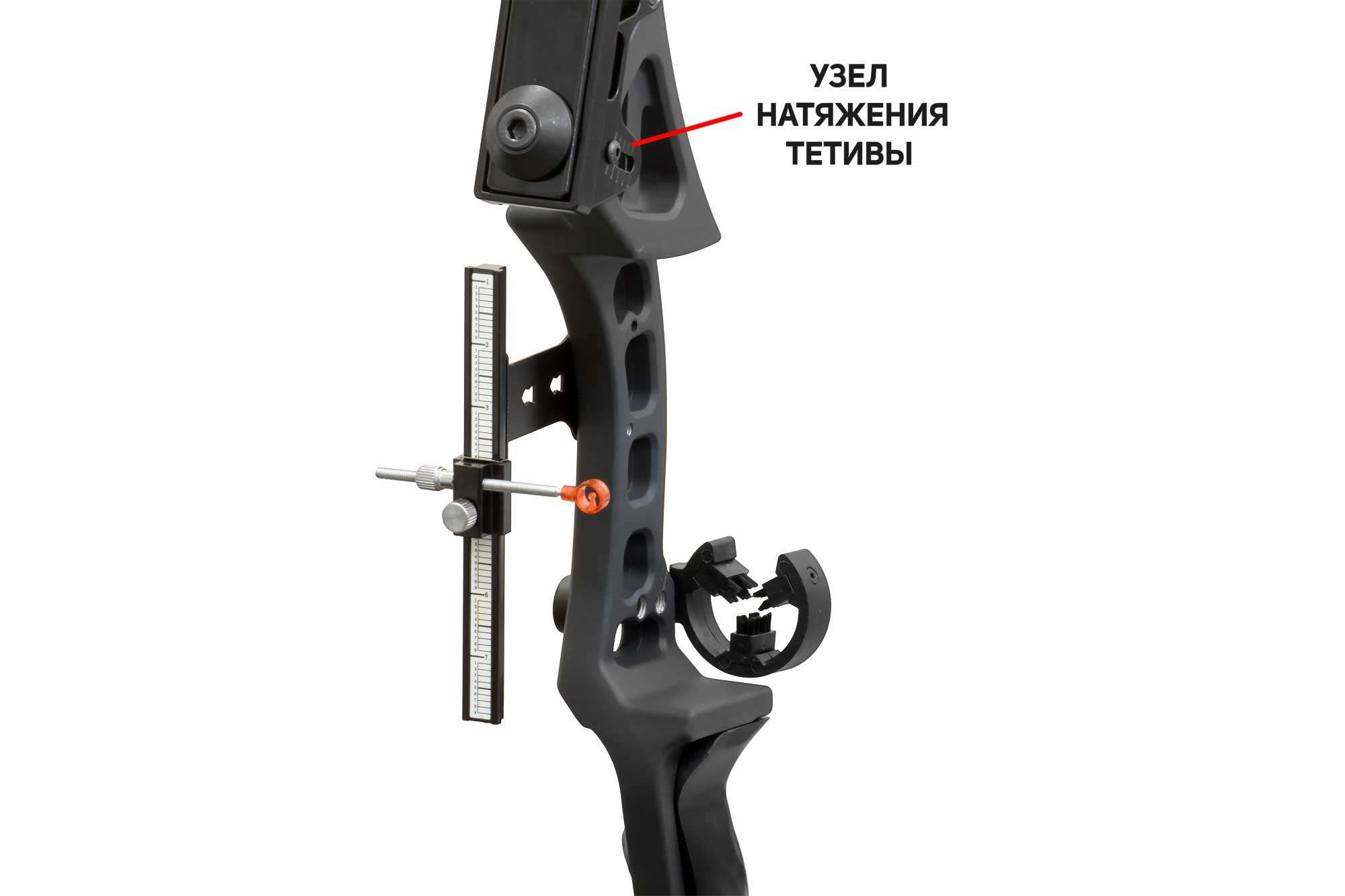 - Лук имеет отверстия для крепления прицела и стабилизаторов.