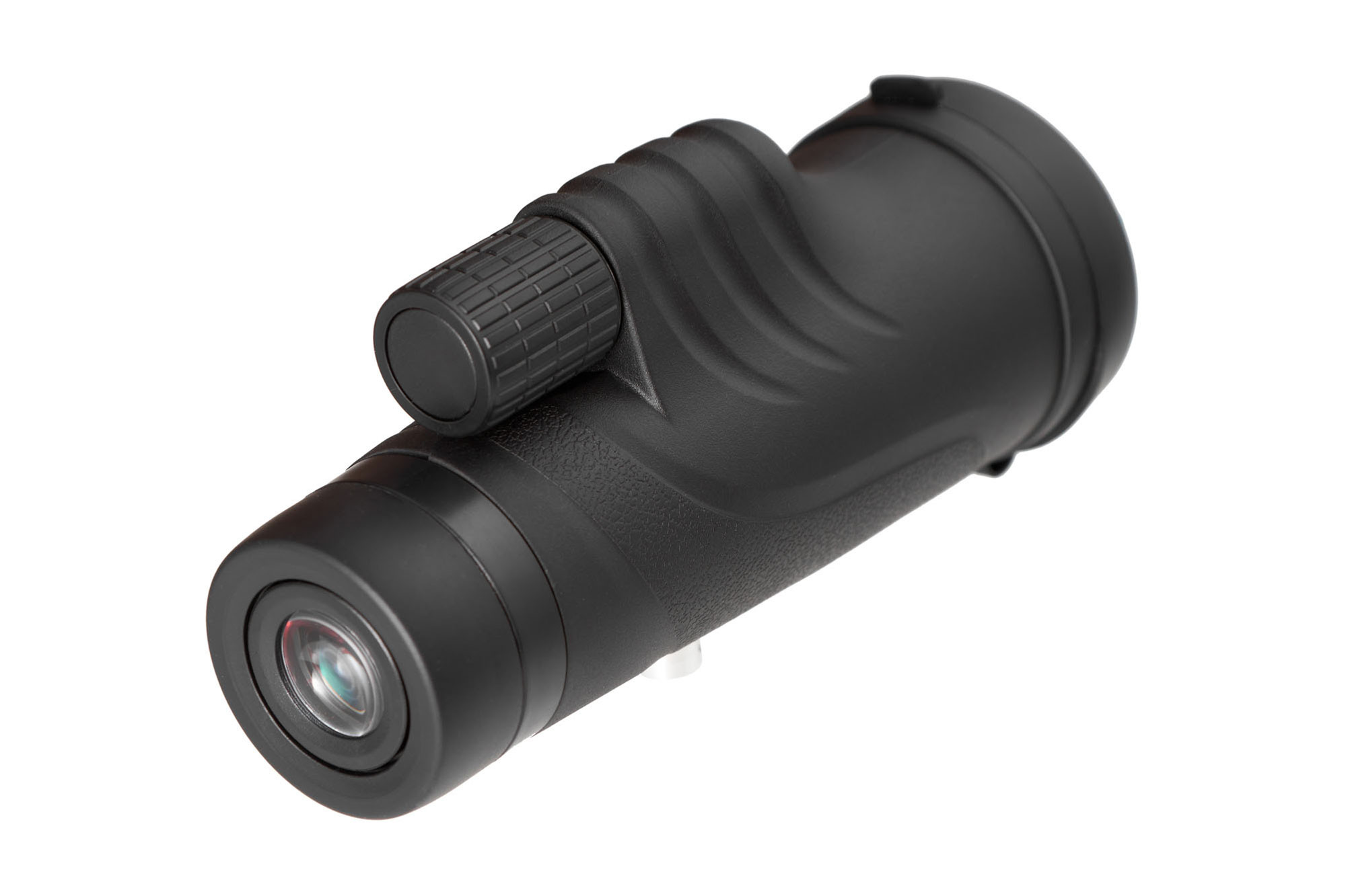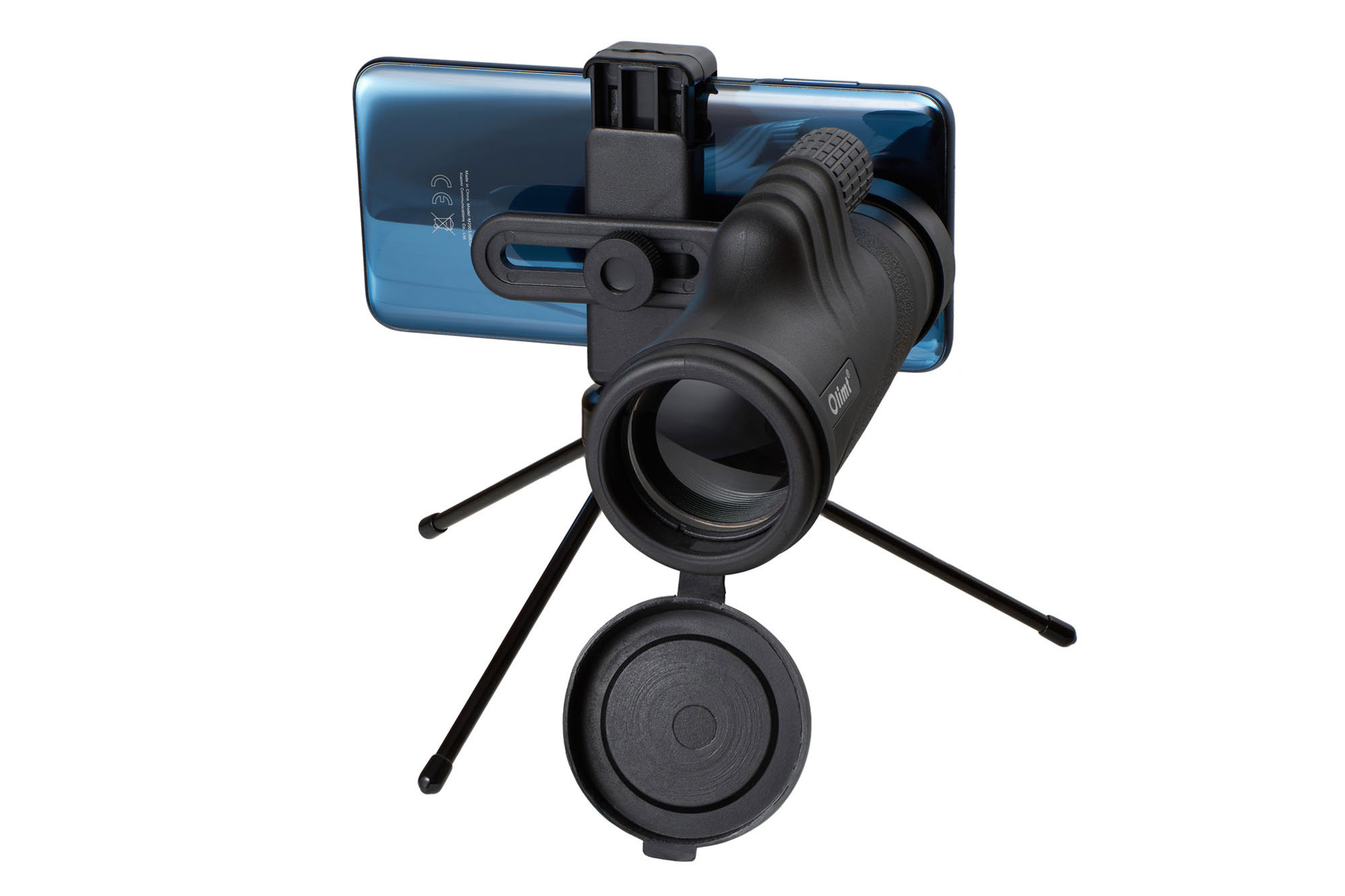 Лінза об'єктива має діаметр 42 мм, чим забезпечує монокуляру гарні показники світлосили, а також комфортний діаметр вихідної зіниці. Зрозуміло, що такому великому показники кратності для комфортного спостереження вкрай бажана установка монокуляра на штатив. І така можливість дійсно передбачена у його конструкції. У нижній частині корпусу є спеціальний роз'єм з різьбленням. До того ж, сам штатив входить у комплект постачання. Тобто за ціною монокуляру в отримуєте ще й штатив. А до нього ще й кріплення для смартфону, прочний тканинний чохол, та петлю для переноски монокуляра на руці.