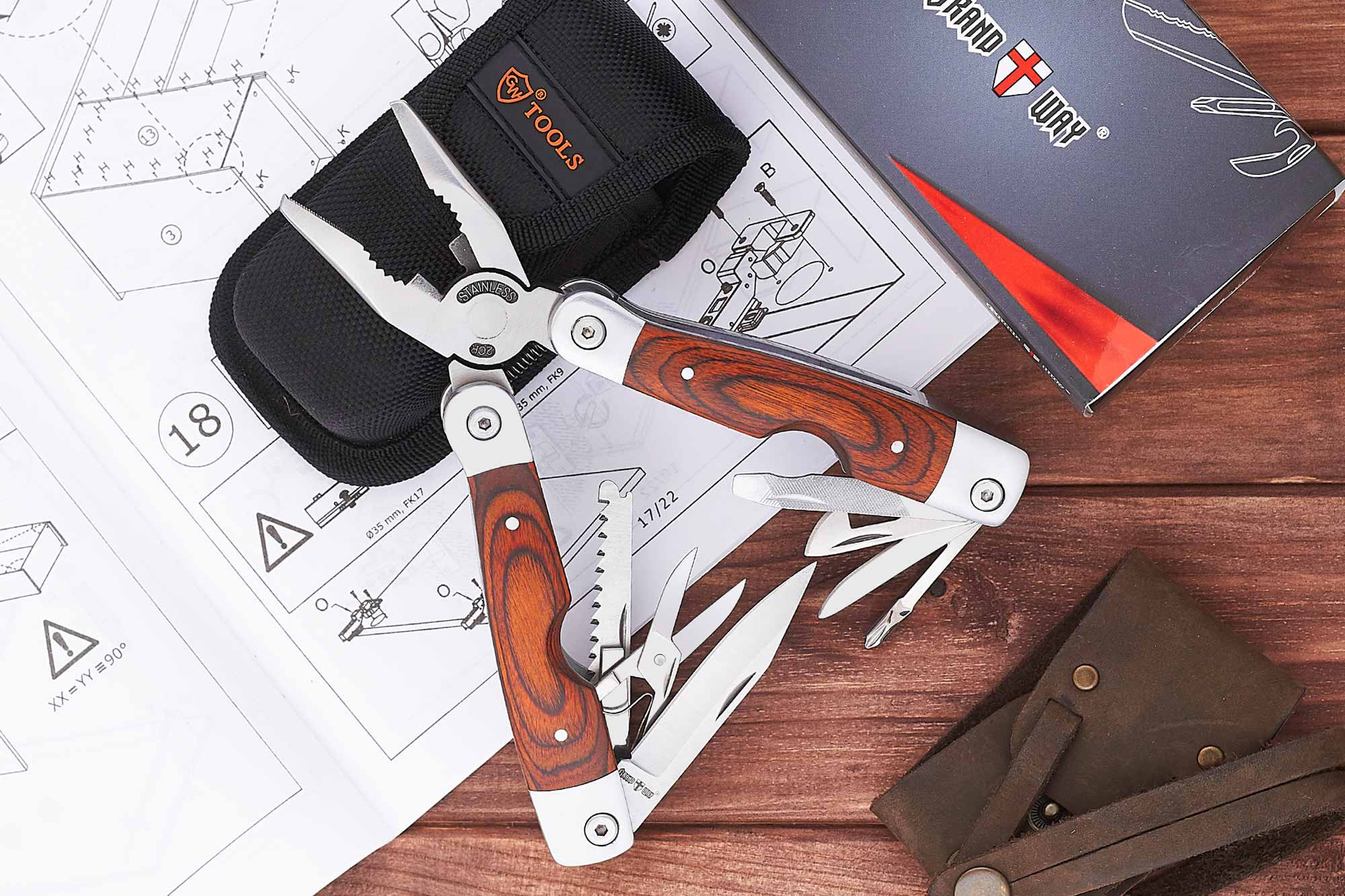 Метал руків'я забезпечений теплими на дотик і приємними на вигляд дерев'яними рукоятками. Примітно, що осьові вузли інструментів – розбірні на гвинтах. Що дозволяє комбінувати елементи набору, переставляти їх, по-своєму, і робить мультитул більш простим в обслуговуванні та ремонтопридатним.
