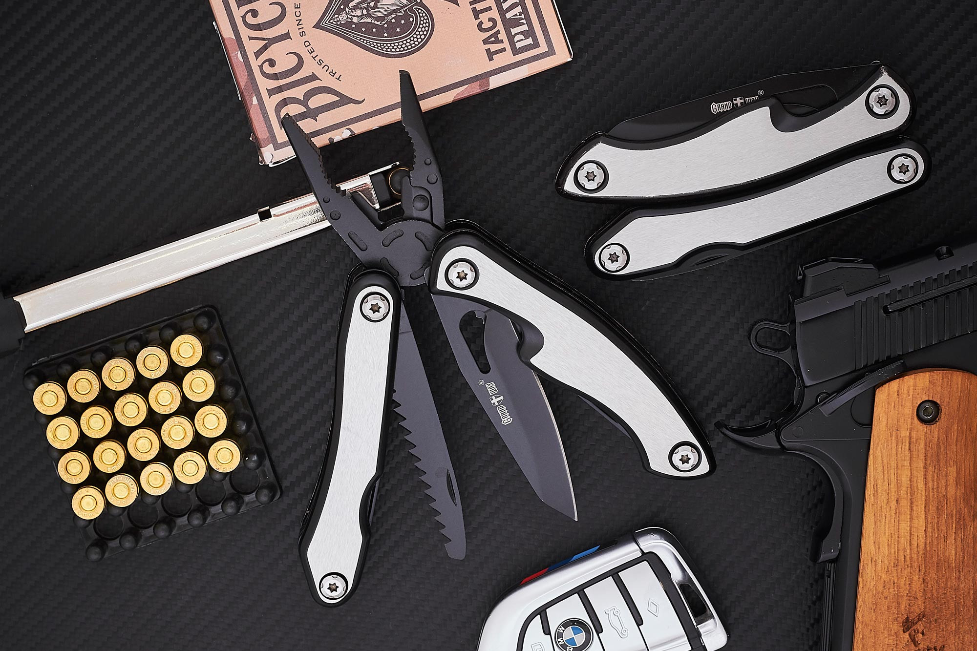 | Дополнительная информация: | Фукционал: плоскогубцы, кусачки, нож, пила, шило,бутылочная открывалка, консервный нож, зачистка изоляции, прямая отвертка, крестовая отвертка |