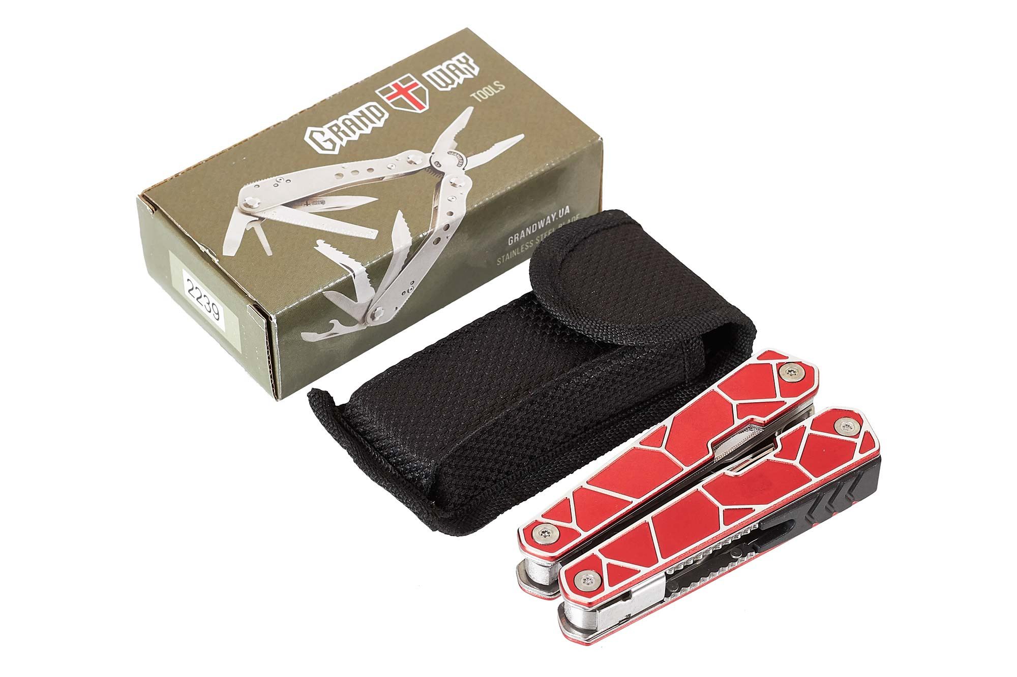 | Дополнительная информация: | Инструменты:пассатижи, кусачки, большой клинок, крестообразная отвертка, откупориватель бутылок, инструмент для чистки рыбы, напильник, консервный нож, плоская отвертка, пила. |