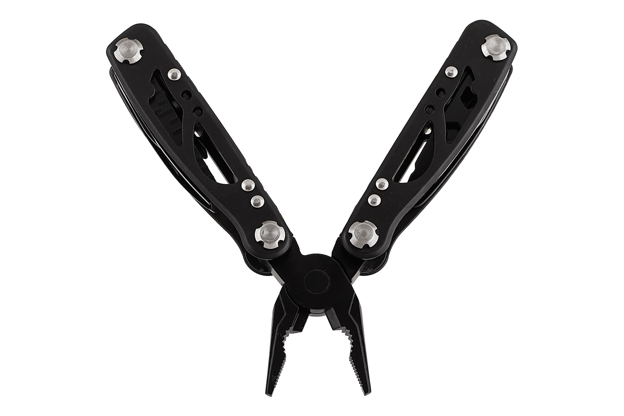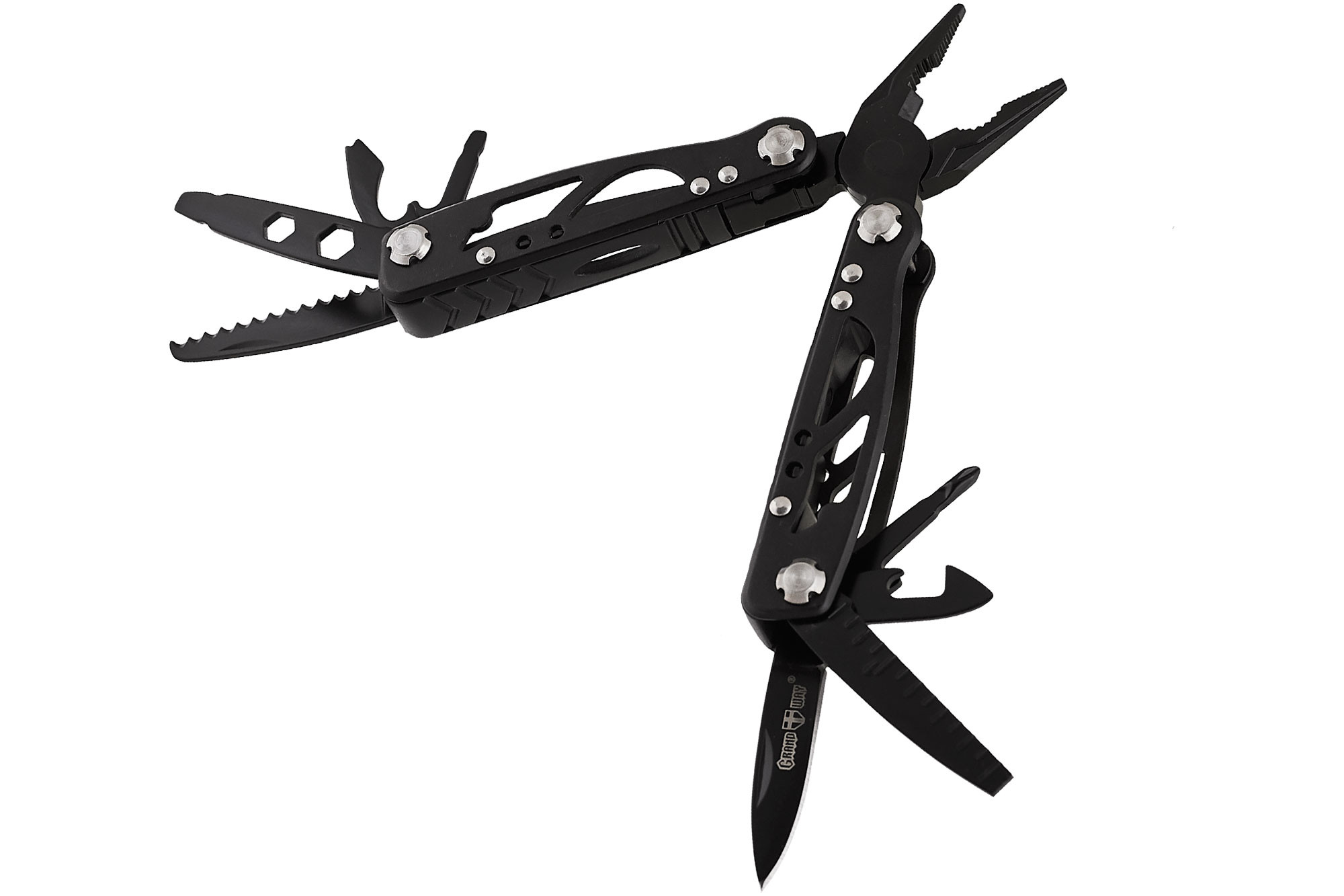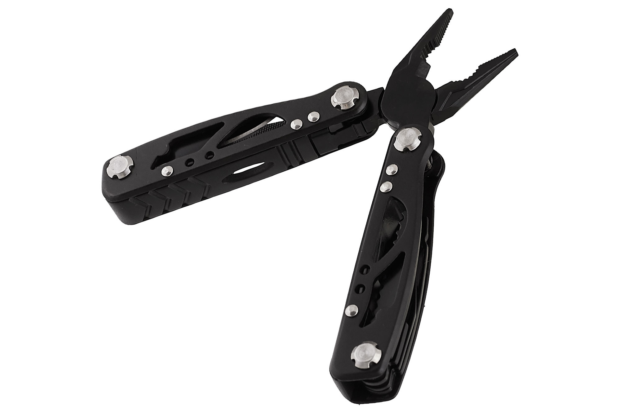 | Дополнительная информация: | Функционал: плоскогубцы, кусачки,нож, напильник, консервный нож, крестовая отвертка, пила, плоская отвертка, бутылочная открывалка, гаечный ключ 5, гаечный ключ 6 |