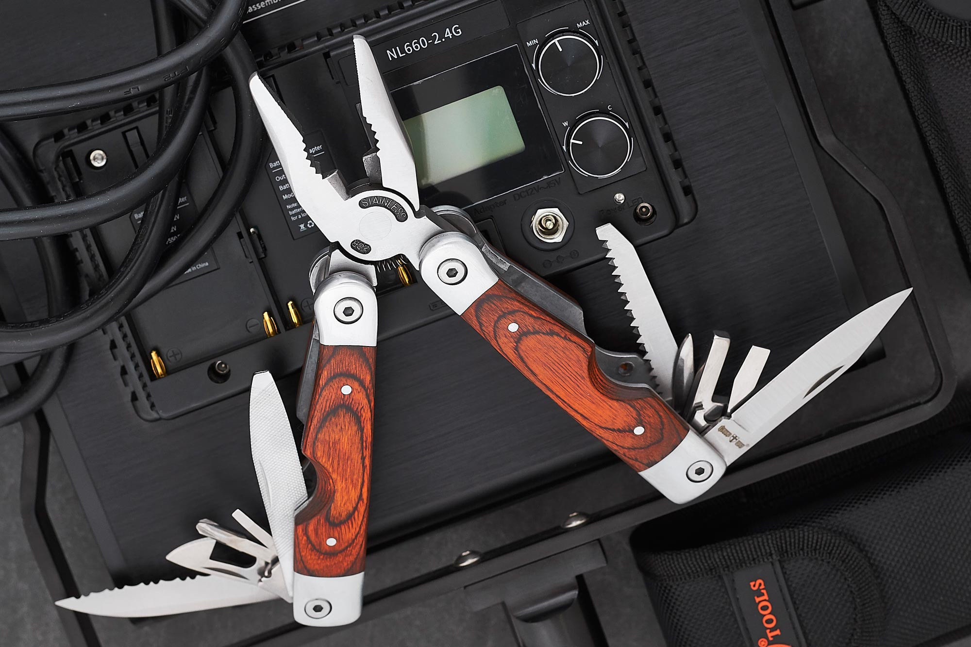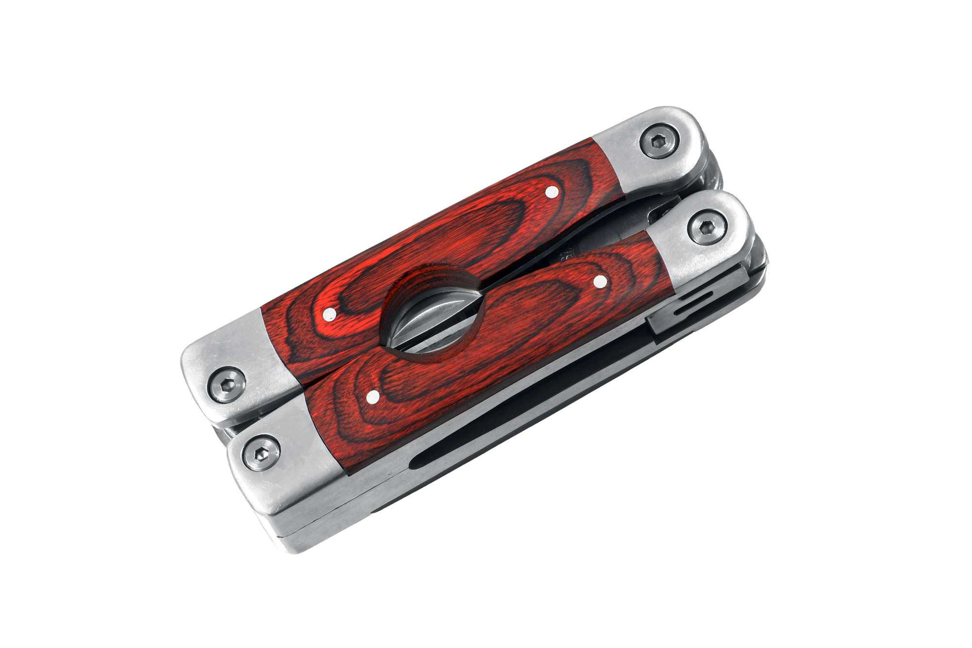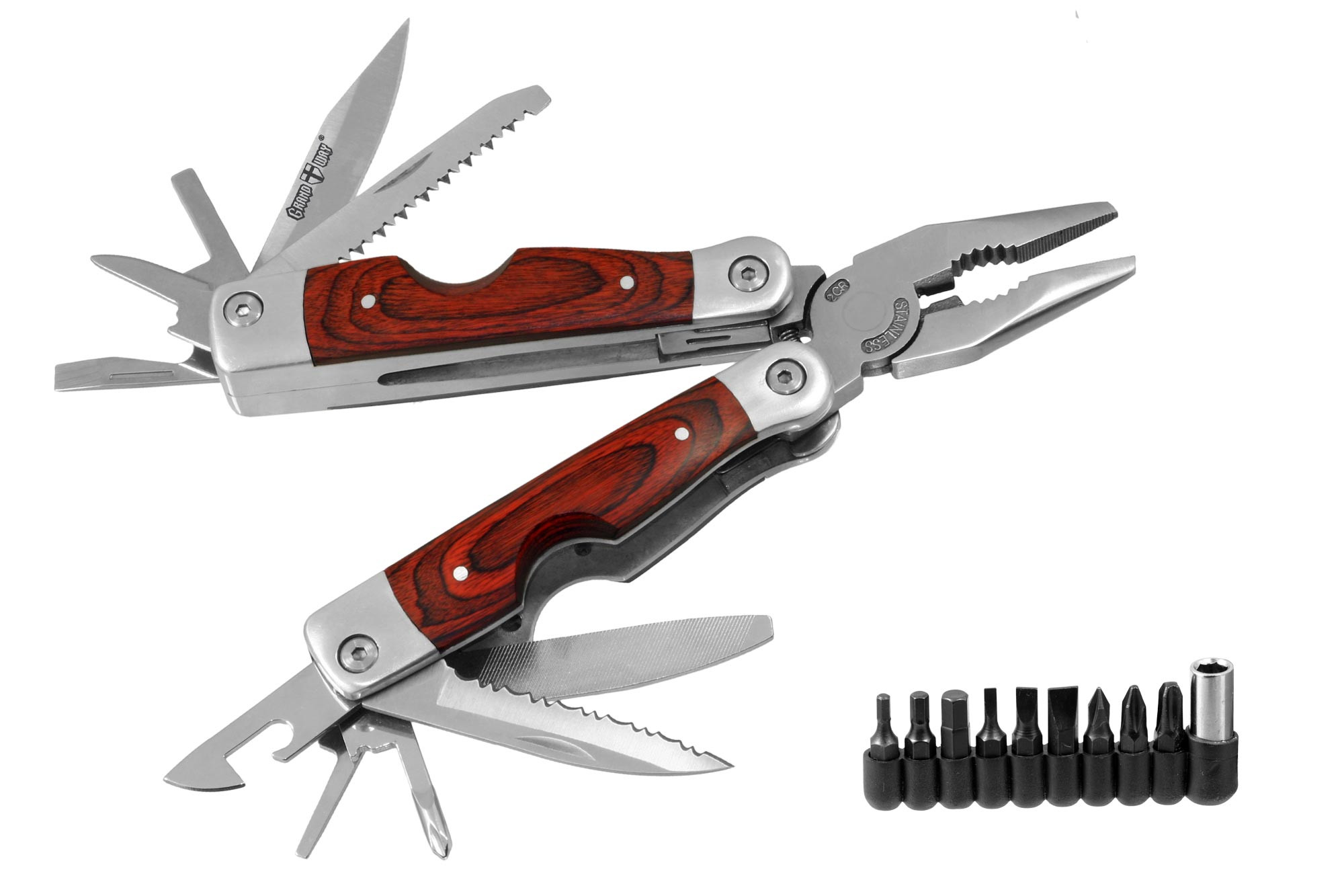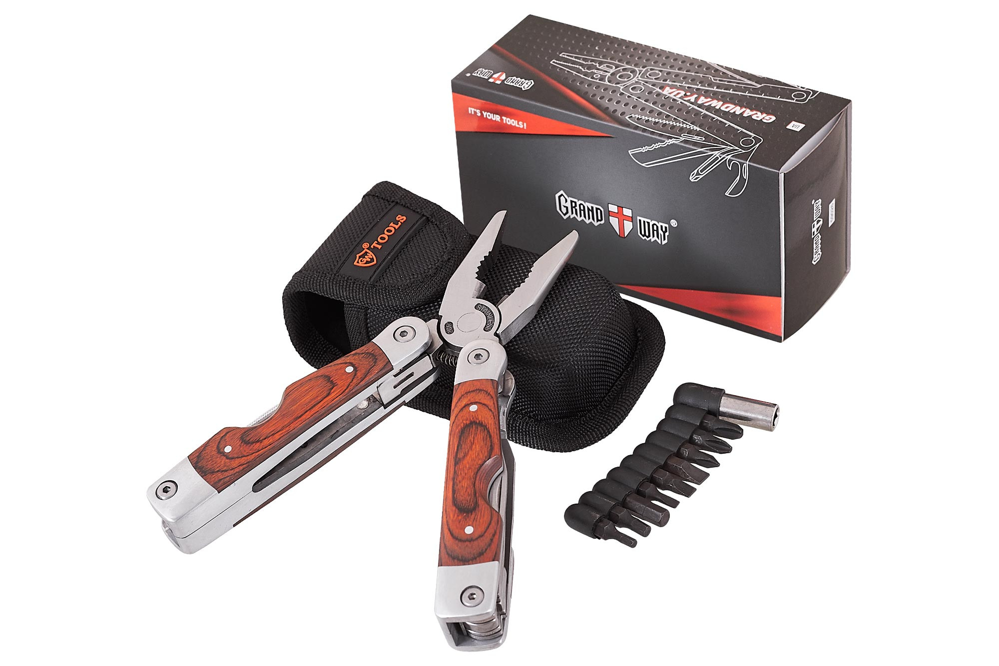 | Дополнительная информация: | Фукционал: плоскогубцы, кусачки, нож, лезвие с серррейторной заточкой, битодержатель, набор бит, напильник, бутылочная открывалка, консервный нож, зачистка изоляции, прямая отвертка, шило, крестовая отвертка, пила |