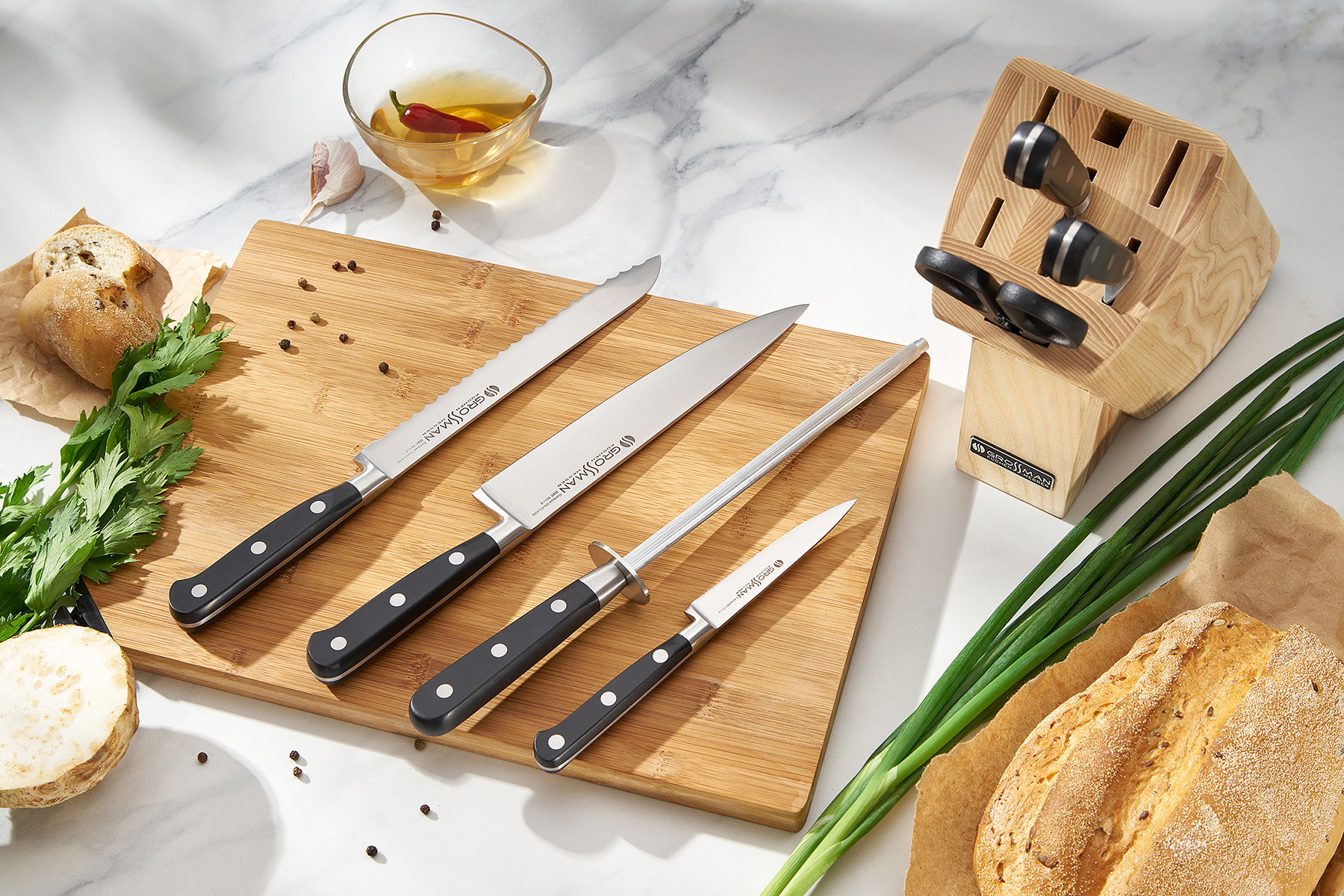 - Набір кухонних ножів GROSSMAN Dayton підійде всім, від новачків до досвідчених кухарів. Всі клинки гострі, руків'я міцні та зручні, а самі ножі добре збалансовані. Працювати ними легко та зручно.