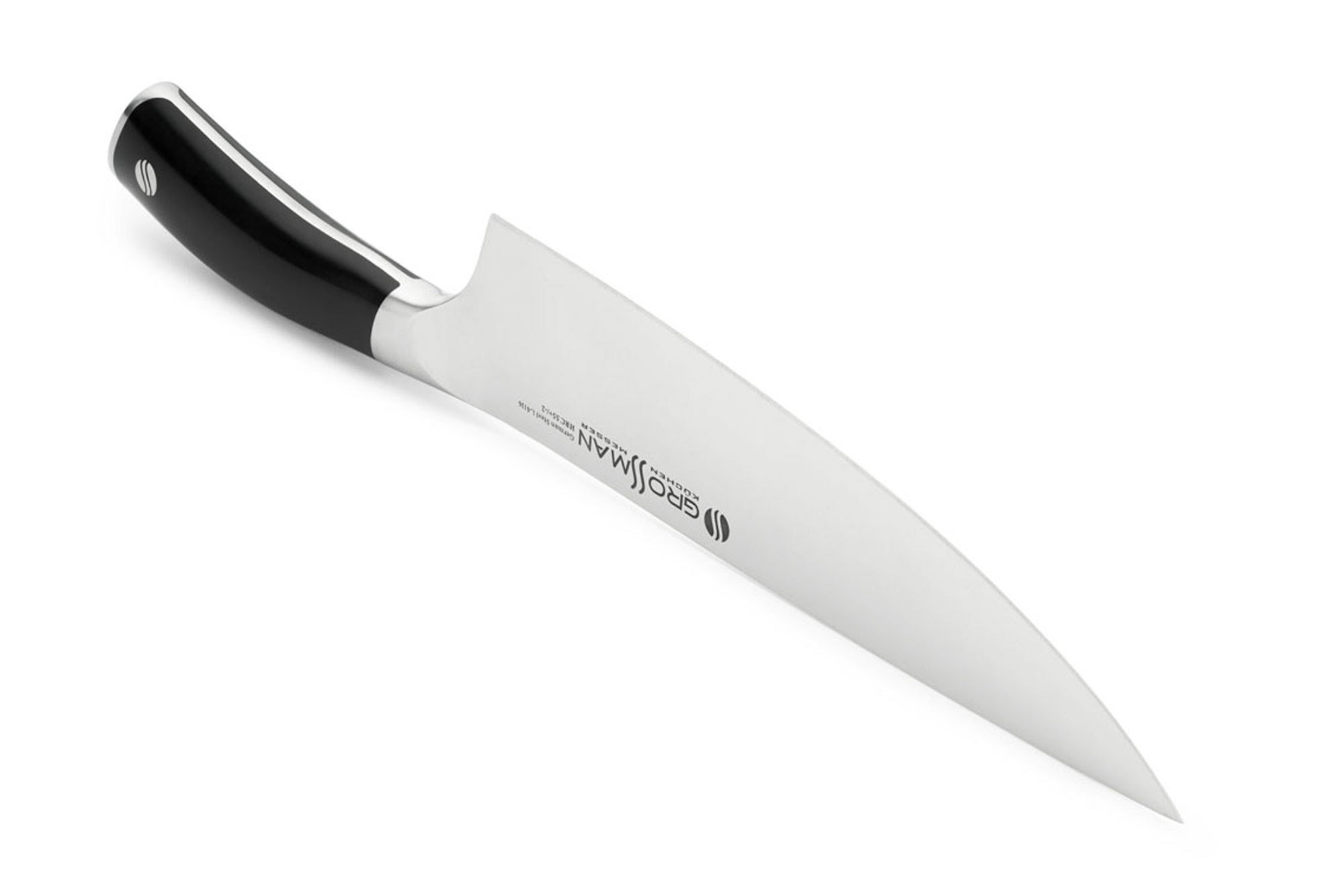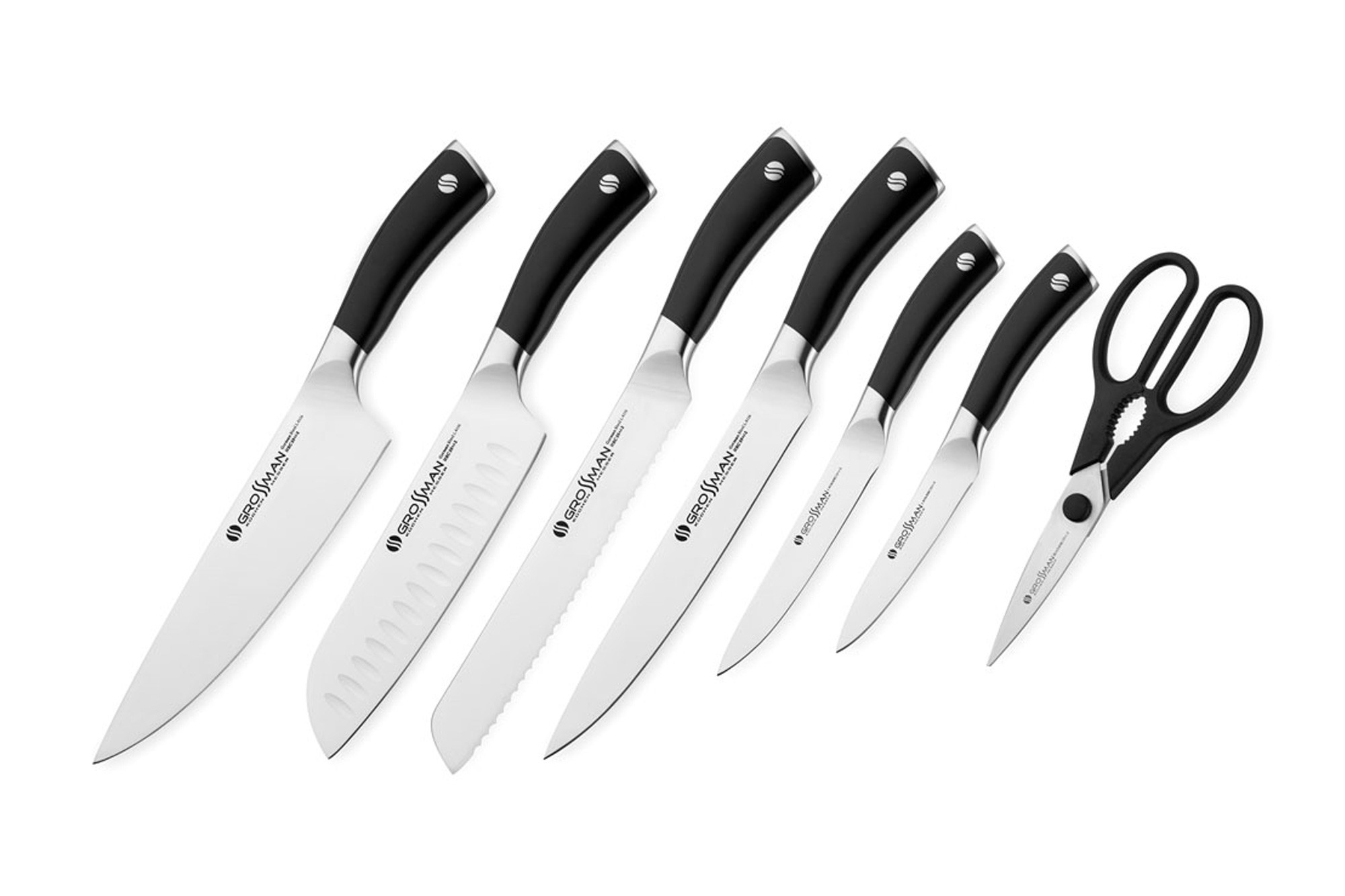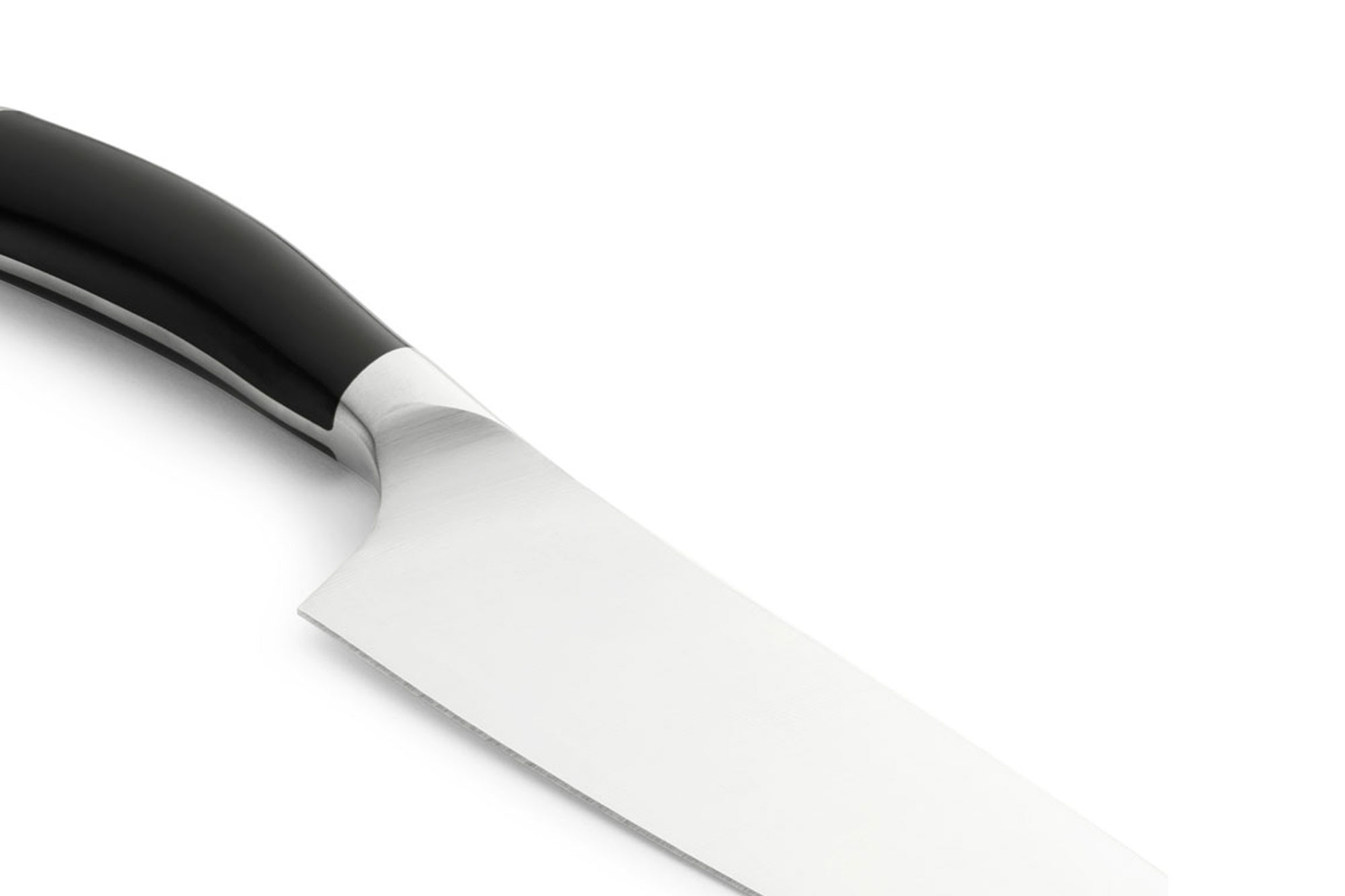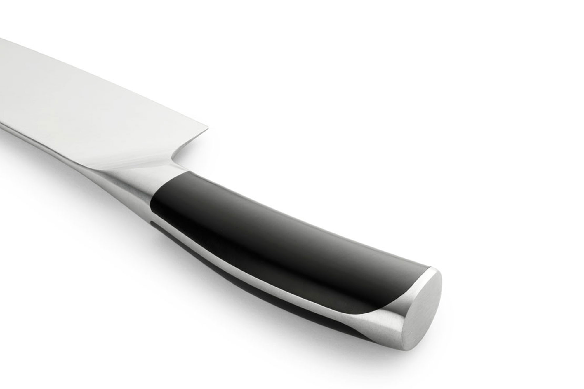 - Міцні, стильні та при цьому зручні рукояті. Їхній легкий вигин дозволить менше напружувати кисть руки під час нарізування продуктів.