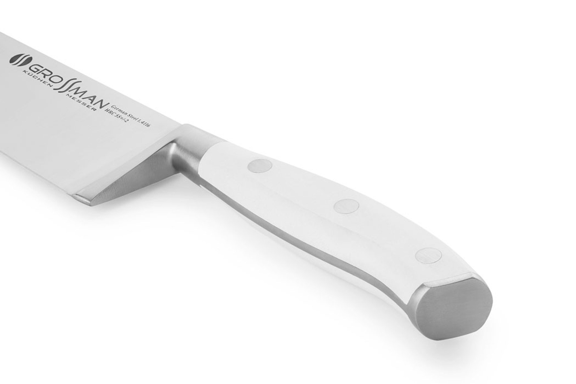 - ЕРГОНОМІЧНІ РУКОЯТІ. Ергономічні рукояті в класичному стилі забезпечують зручне утримання ножа і не втомлюють ваших рук навіть за тривалого використання.