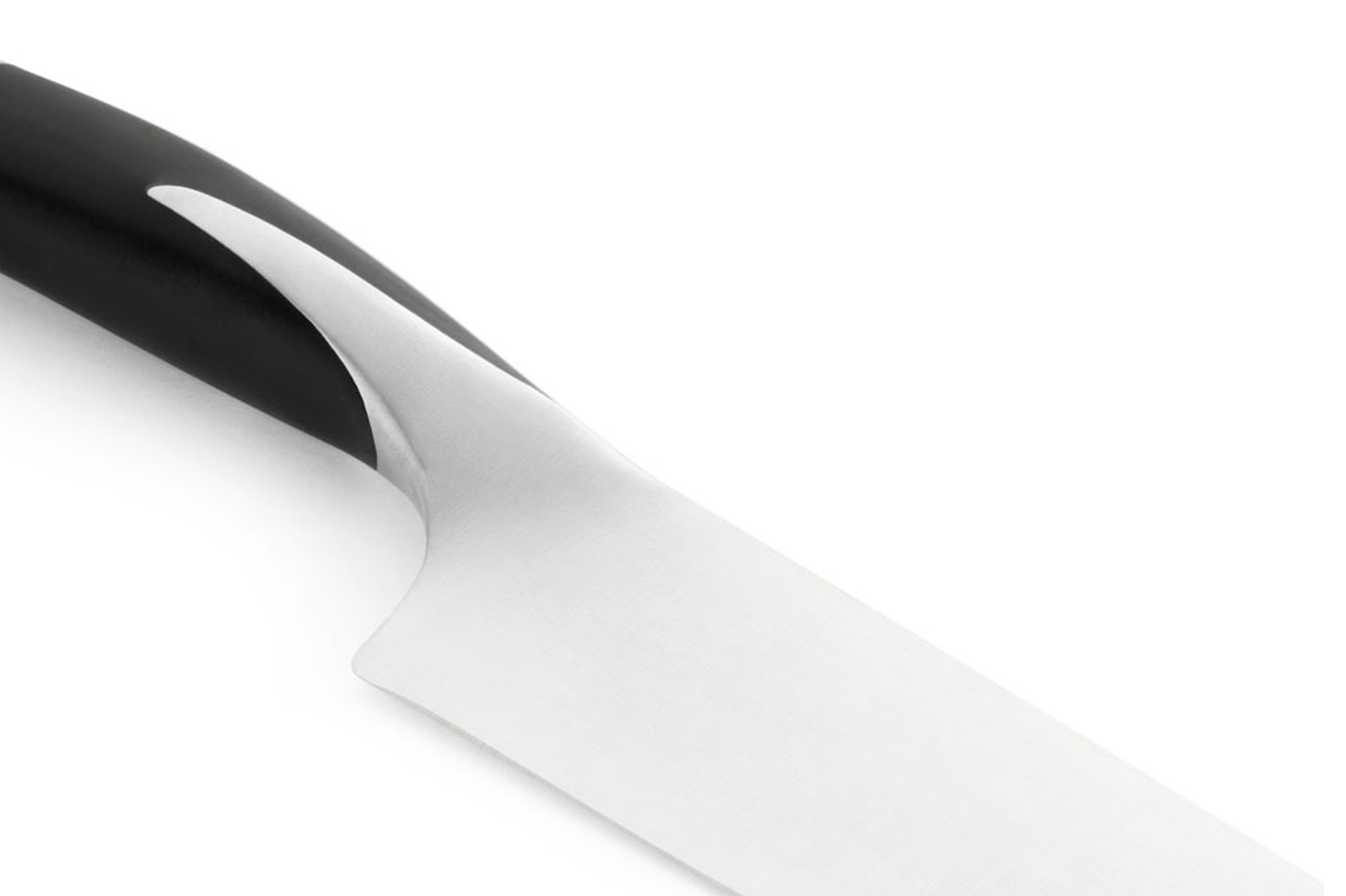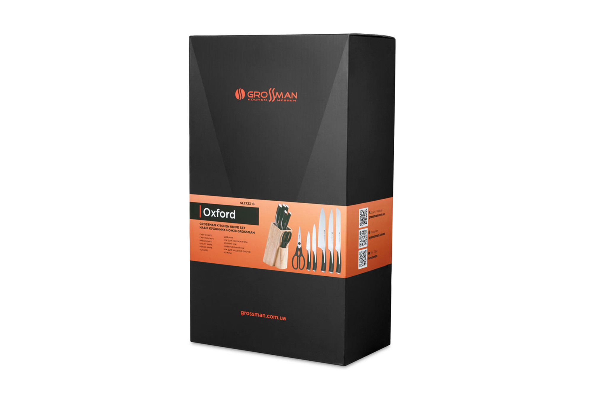 - Оригінальний "сталевий" дизайн. Поєднання краси, стилю та зручності. За такими ножами легко доглядати – клинки та рукояті легко чистити, вони довго залишаються гострими, а блок-підставка відмінно захищає ножі від вогкості та пошкоджень.