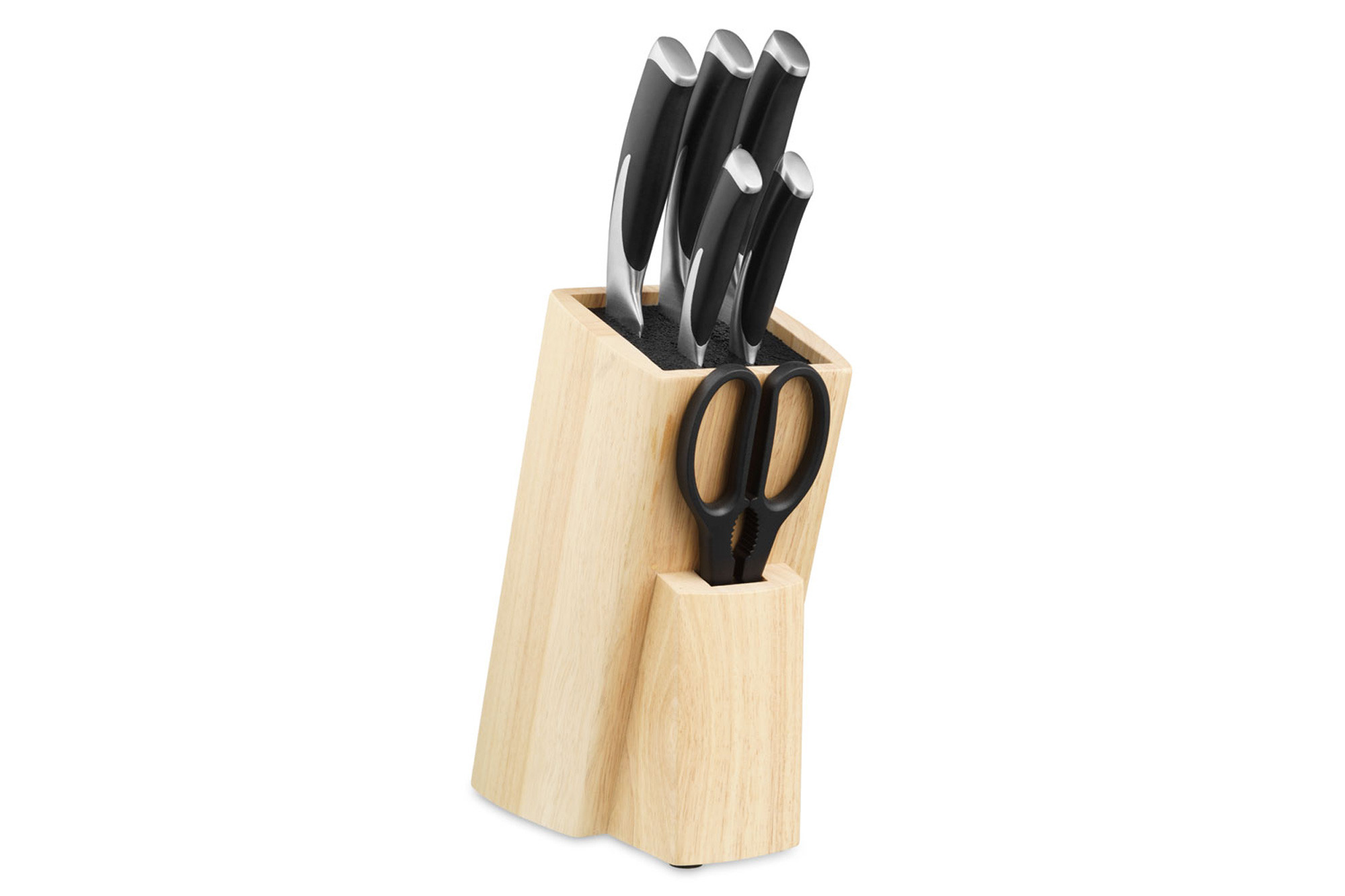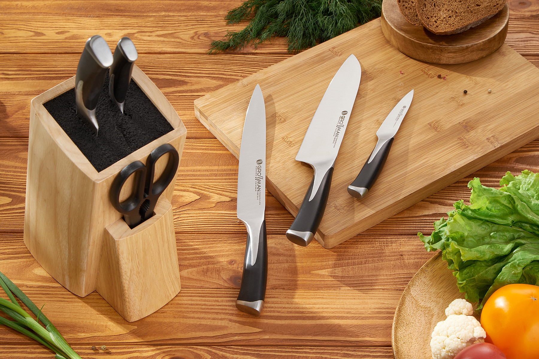 - Багата, грамотна комплектація набору. Ви робите одну покупку і купуєте всі необхідні на кухні ножі, плюс відмінну підставку для них.