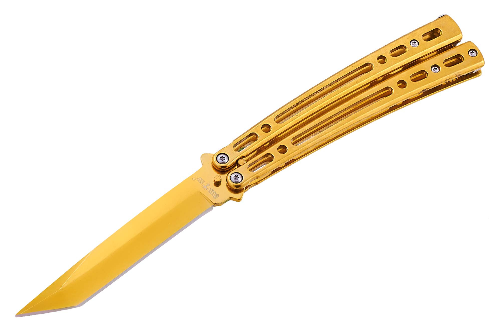 Клинок и другие поверхности ножа, снабжены защитно-декоративным покрытием золотого цвета, украшающим его и дополняющим полезные свойства нержавеющей стали.