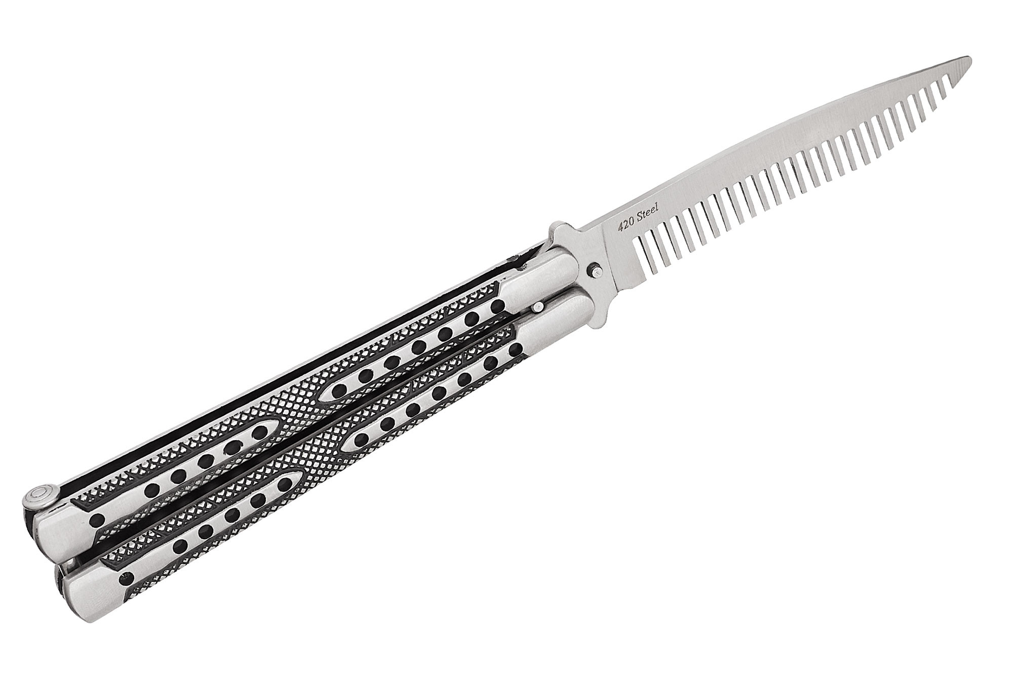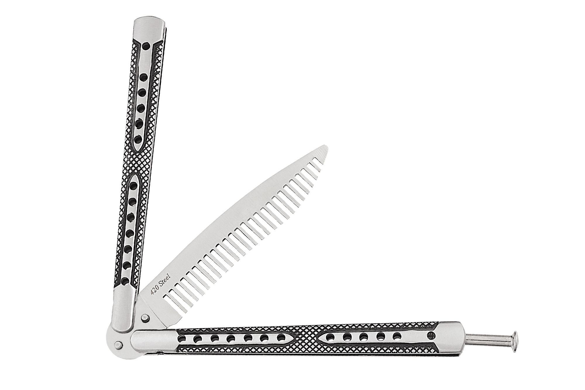 Клинок тренировочного балисонга 190106-A интересен ещё и тем, что, фактически, является расчёской. Таким образом, покупая его, вы получаете и тренажёр для флиппинга, и удобный EDC аксессуар!