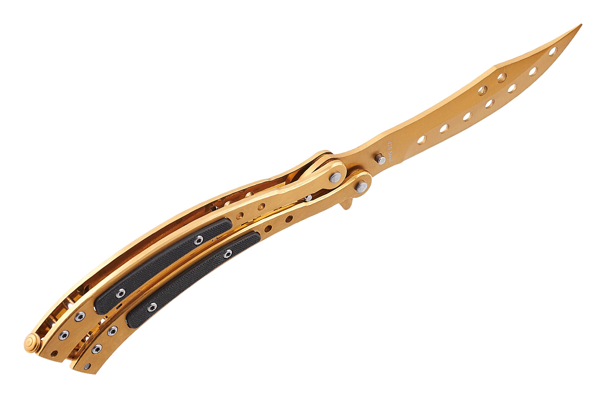 Анодирование поверхностей балисонга имитирует цвета золота. Такое покрытие, сделанное с придает ему яркий, немного экзотичный вид, а также дополняет защитные свойства нержавеющей стали.