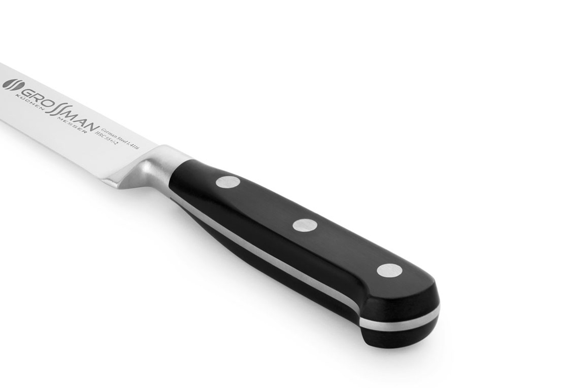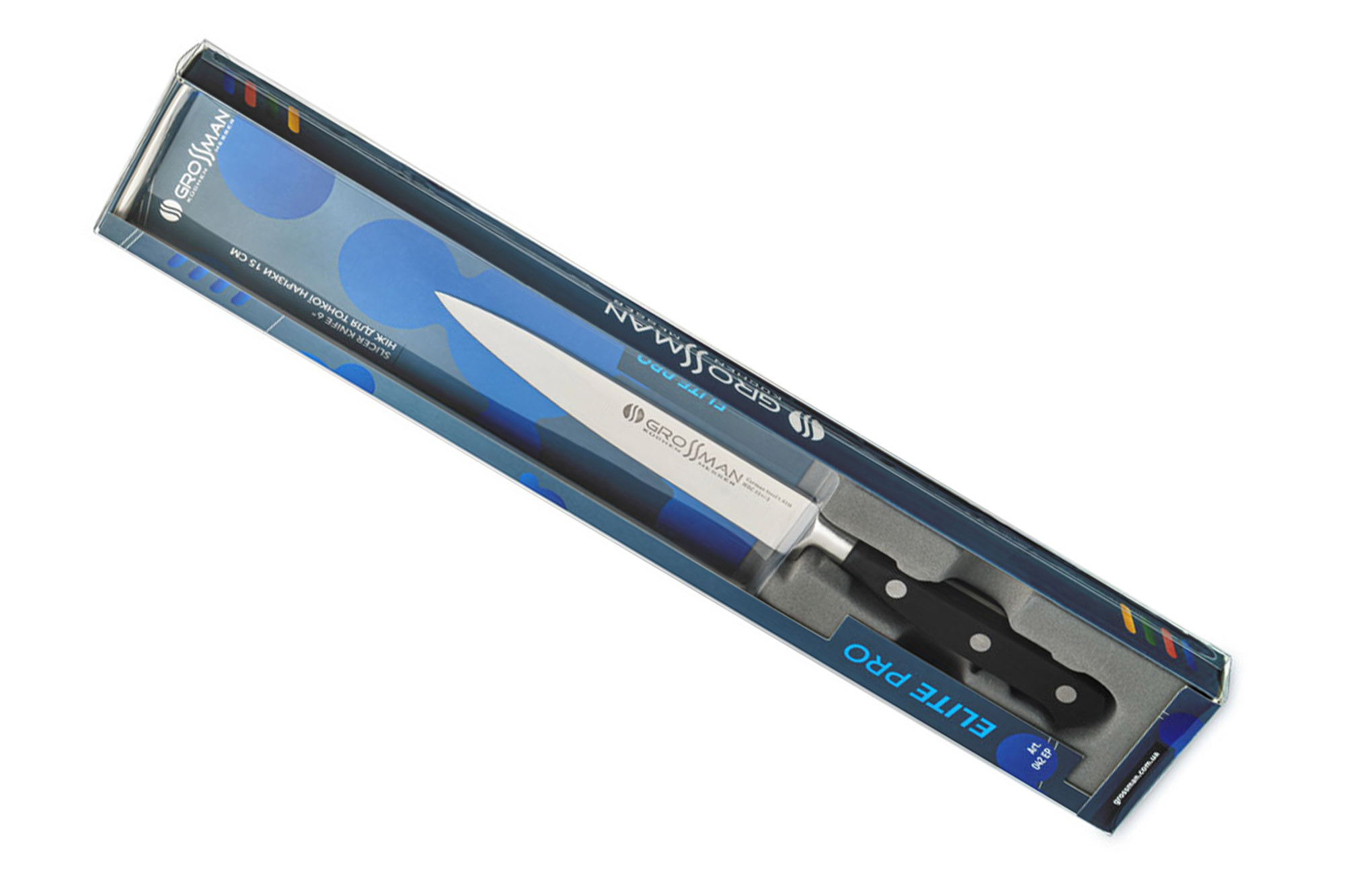 Якщо вам потрібно нарізати м'ясо, ковбасу чи шинку, приготувати закуски, значить настав час взяти в руки кухонний ніж для нарізки GROSSMAN ELITE PRO.