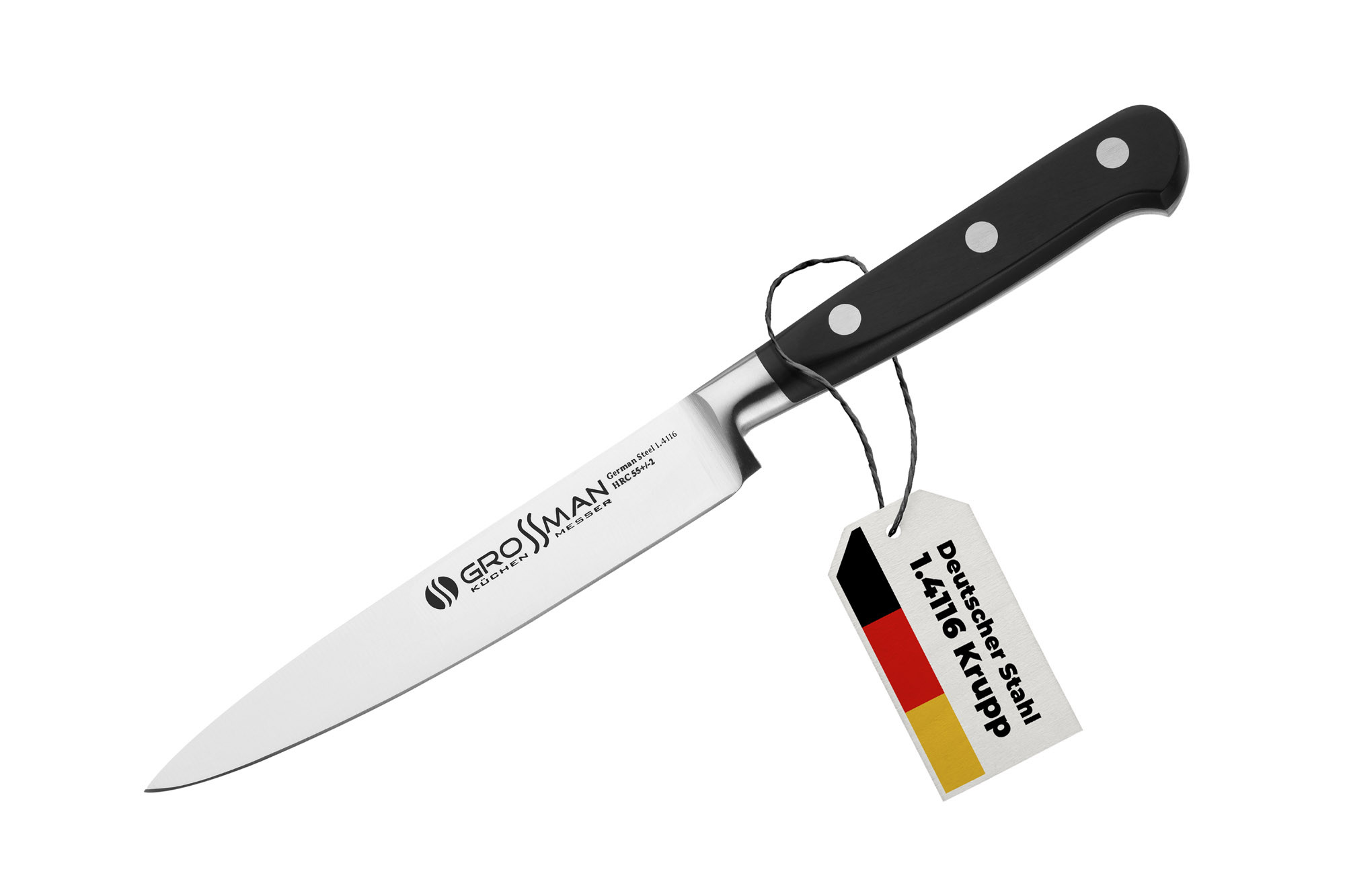 Ножі та клівера зі сталі 1.4116 – приклад справжньої європейської якості. Розумне та надійне вкладення ваших грошей. Ножі серії GROSSMAN ELITE PRO порадують вас у роботі та правильно прослужать вам довгі роки.