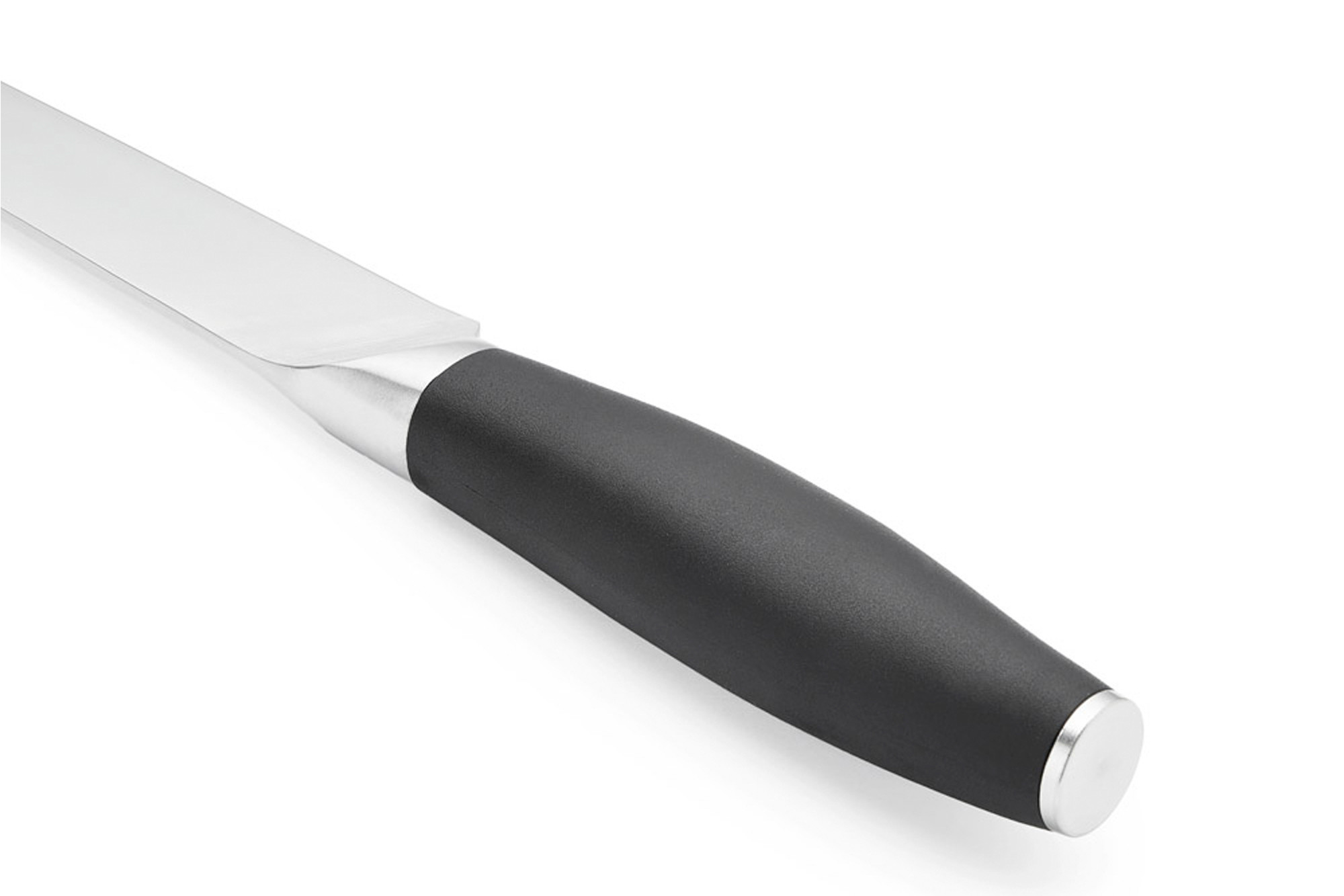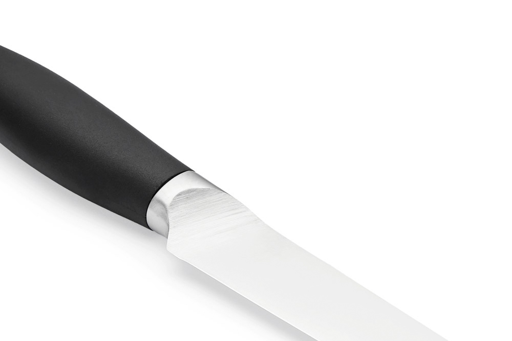 Клинок ножа для нарізання – довгий, вузький і гострий. Він дозволяє одним рухом зробити точний, контрольований розріз. Якщо вам потрібно акуратно, рівними шматками нарізати шинку або швидко та красиво розділити м'ясо на порції чи приготувати закуски, вам потрібен саме такий ніж для нарізання.