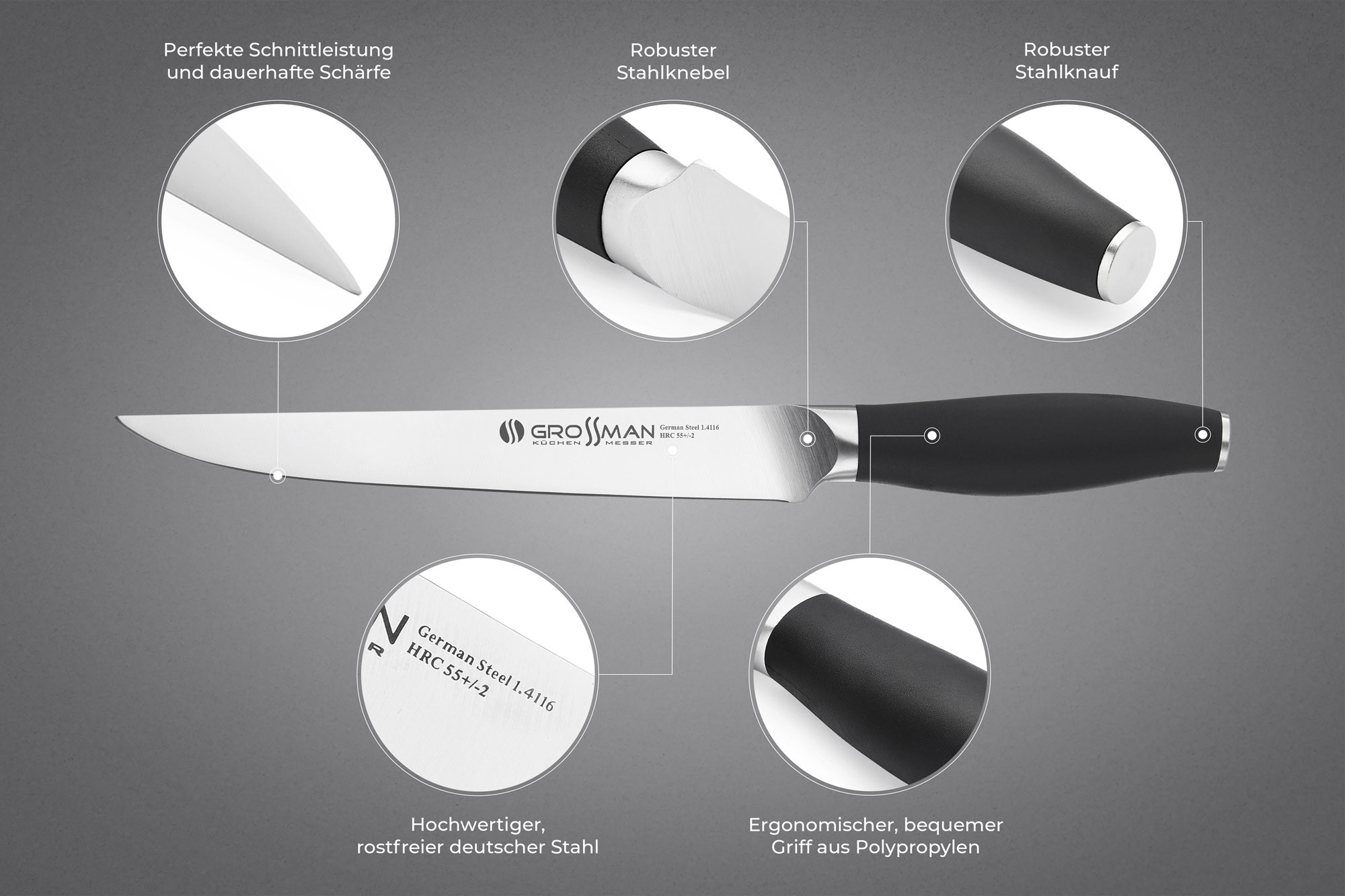 Тепер кухонні ножі з європейської нержавіючої сталі можна замовити та купити прямо в Україні. GROSSMAN з радістю пропонує вам цю можливість!