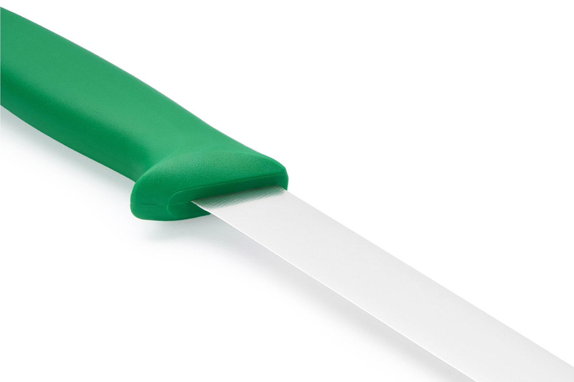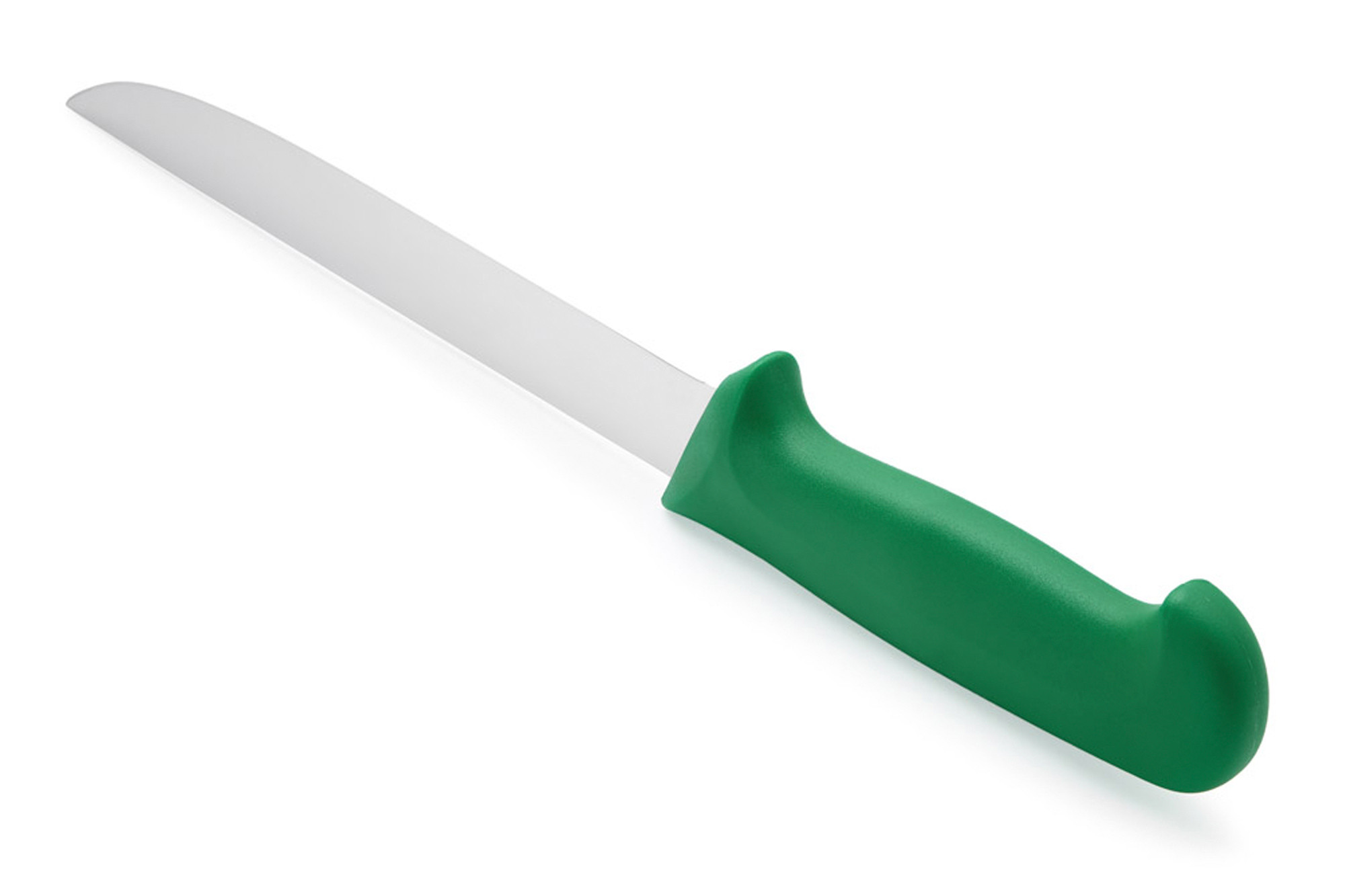 Клинок ножа для нарізання – довгий, вузький і гострий. Він дозволяє одним рухом зробити точний, контрольований розріз. Якщо вам потрібно акуратно, рівними шматками нарізати шинку або швидко та красиво розділити м'ясо на порції чи приготувати закуски, вам потрібен саме такий ніж для нарізання.
