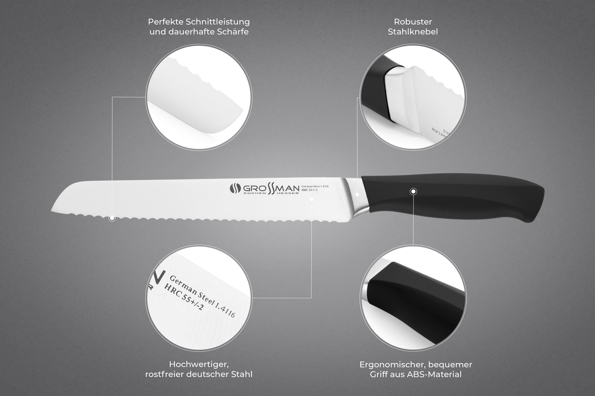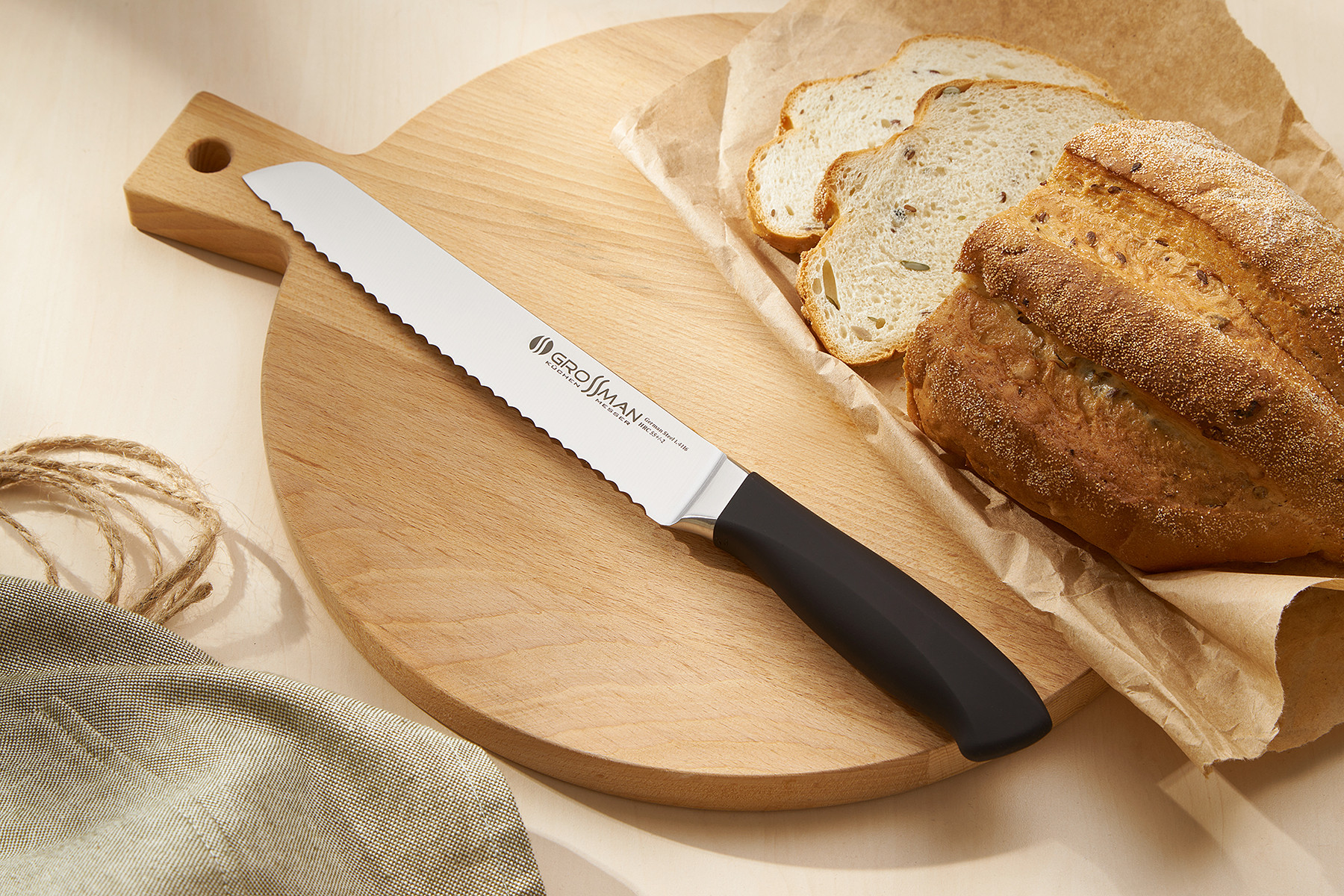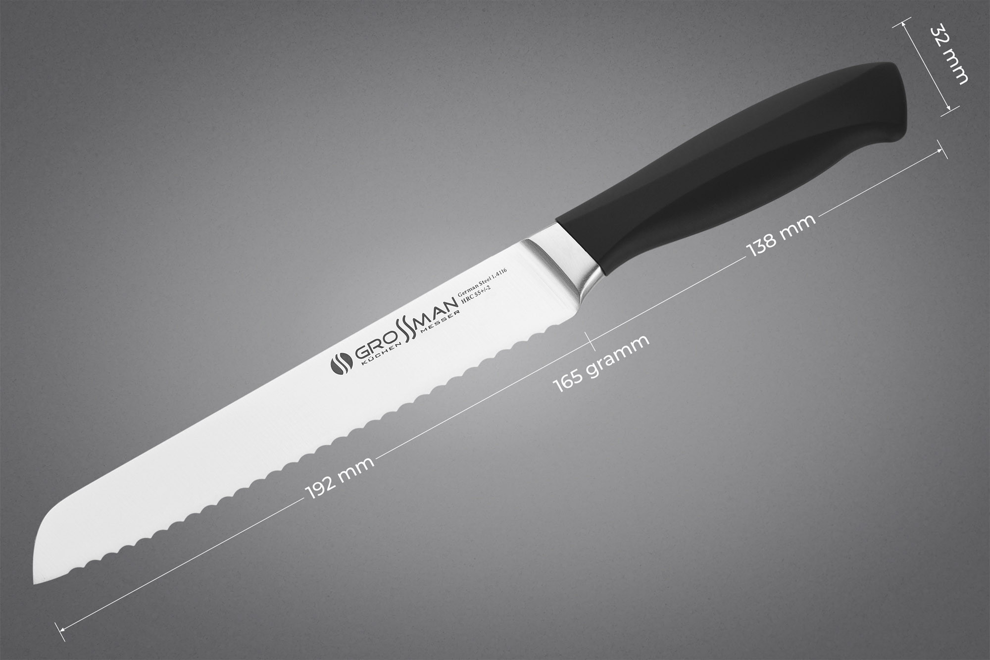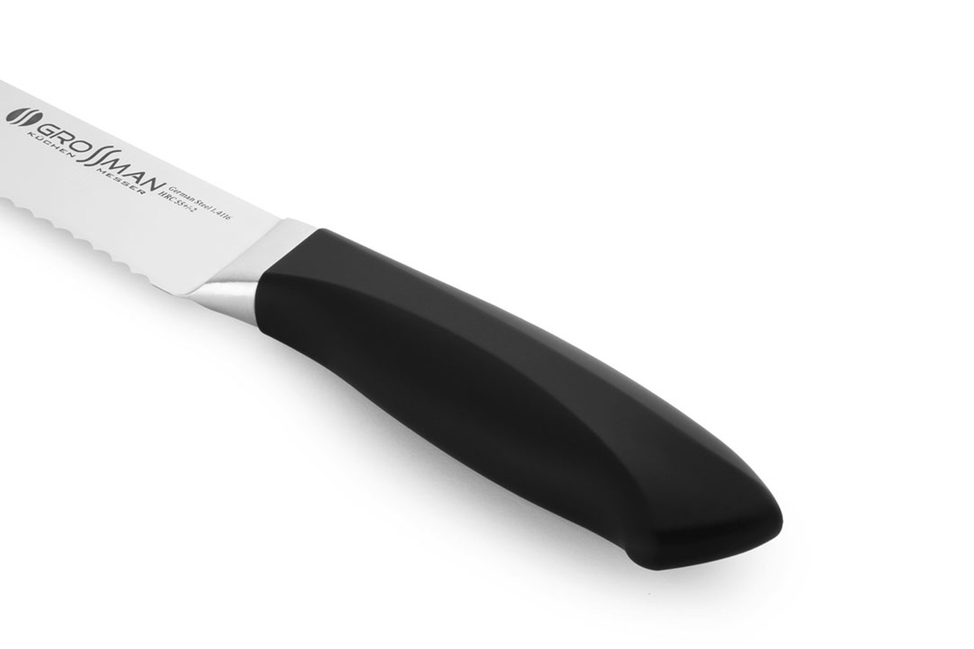 Такий пилкоподібний клинок допомагає розпиляти м'який хліб, не натискаючи на нього. Шматочки хліба вийдуть рівними і цілими. Навіть якщо ви маєте справу зі свіжою м'якою булкою, ніж для нарізання хліба GROSSMAN HC вас не підведе.