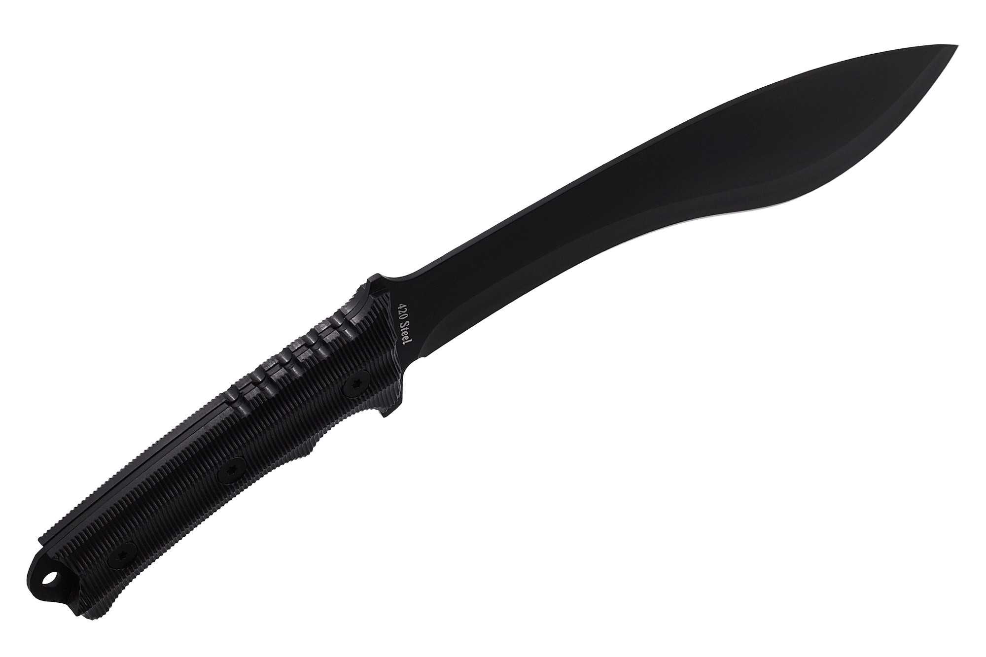 Так, к примеру, в оригинале кукри делается из высокоуглеродистой стали, которая, хоть и имеет ряд преимуществ, все-таки уступает нержавеющим сортам стали. Поэтому клинок мачете 11057 из 420 стали и дополнительным защитным покрытием – явно лучше и практичнее аутентичных образцов и не особо требует дополнительного ухода. Вдобавок, этой стали характерна стойкость к коррозии, выкрашиванию и легкая затачиваемость.