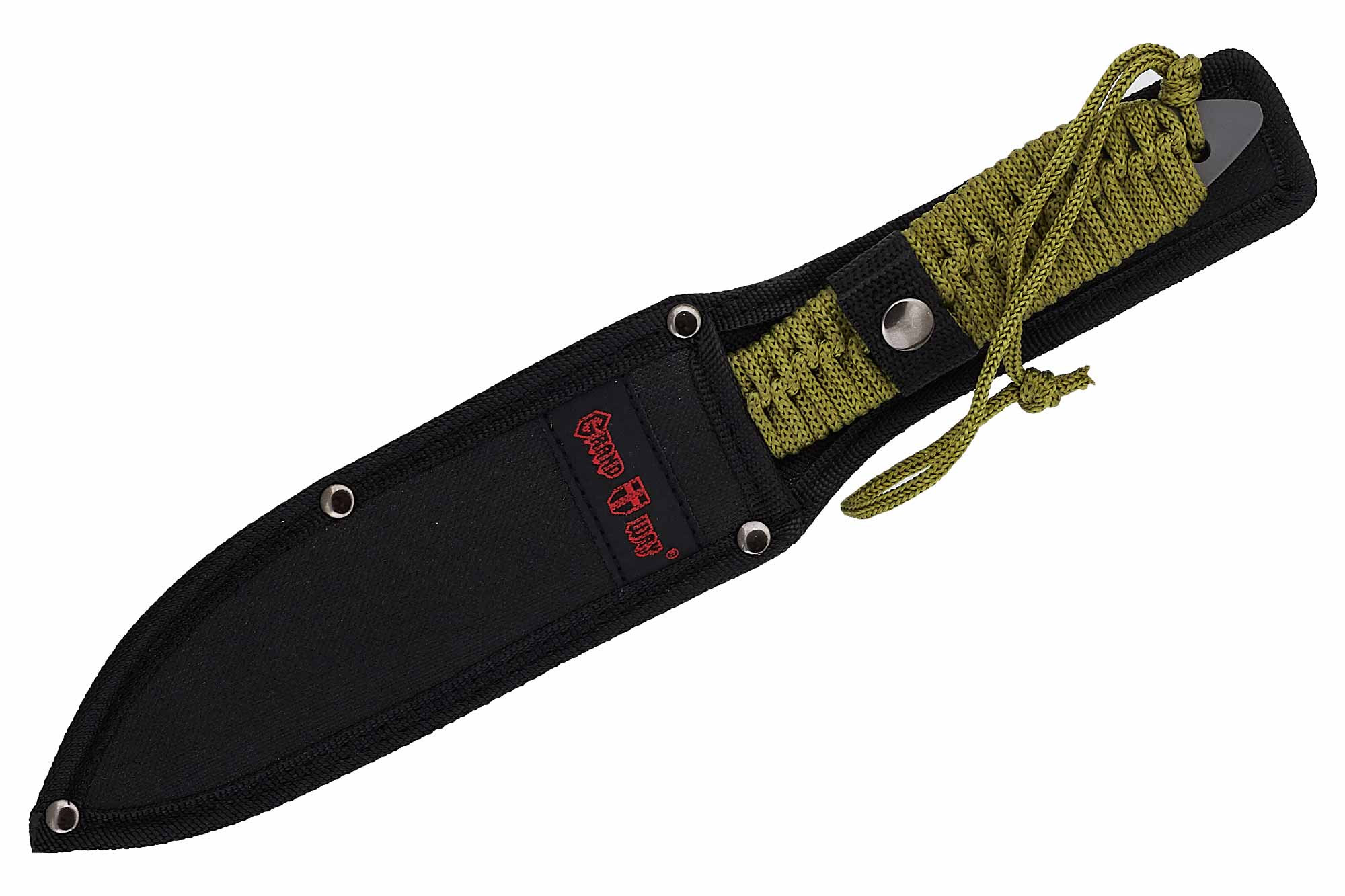 Grand Way 15716 B можно отнести к категории больших метательных ножей. Его масса в 250 г, ощутимо смещённый к крупному клинку центр тяжести и удобная рукоять позволят уверенно метать этот нож на значительные расстояния. А обух толщиной в 4,7 мм, вязкая 420-я нержавеющая сталь, и характерное для метательных ножей отсутствие накладок на рукояти, позволят вам делать это неоднократно без необходимости чинить нож.