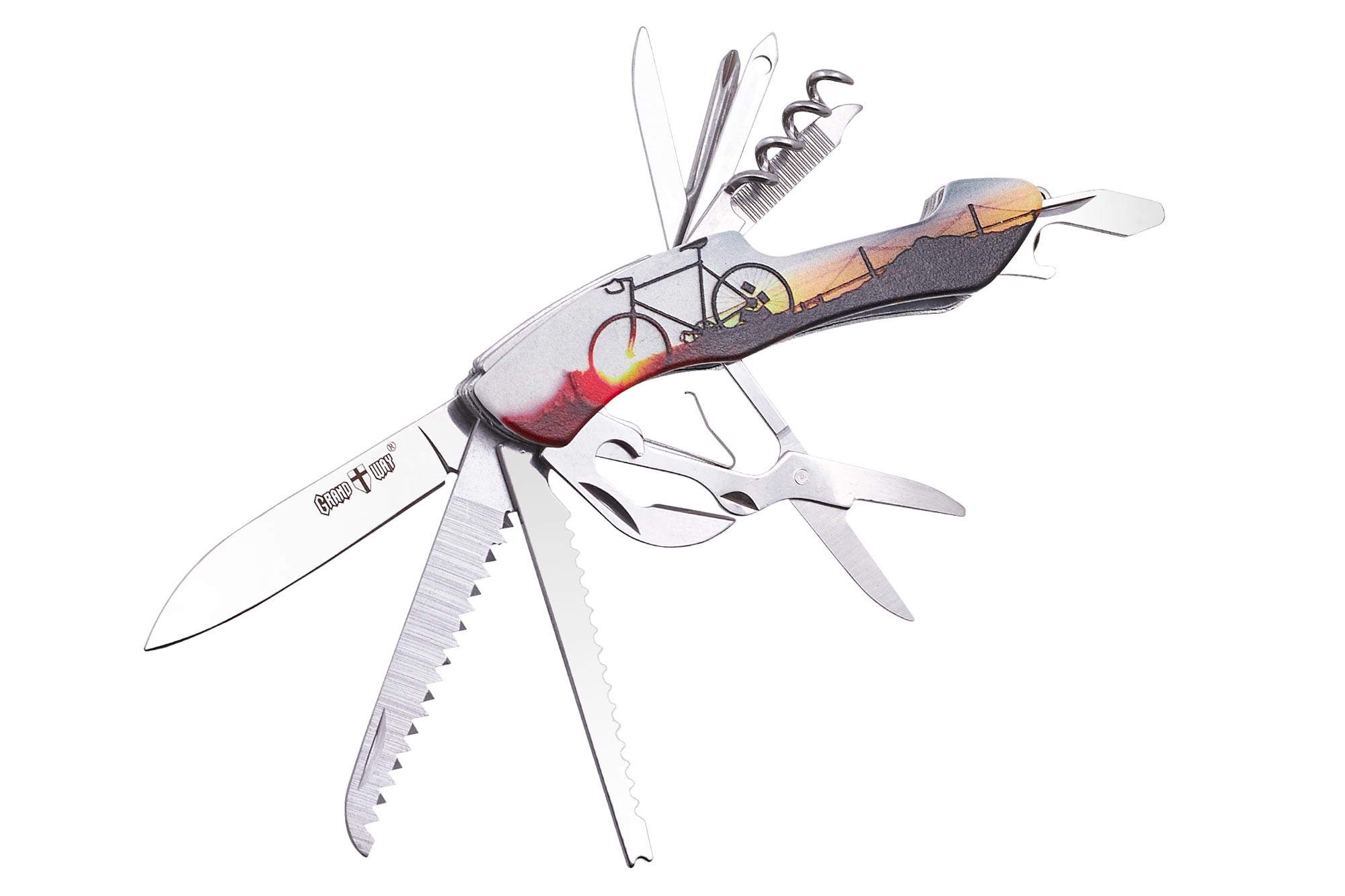 | Дополнительная информация: | Функционал: Нож, открывалка бутылок, плоская отвертка, консервный нож, ножницы, пила, инструмент для чистки рыбы, штопор, шило, пилочка для ногтей, крестовая отвертка |