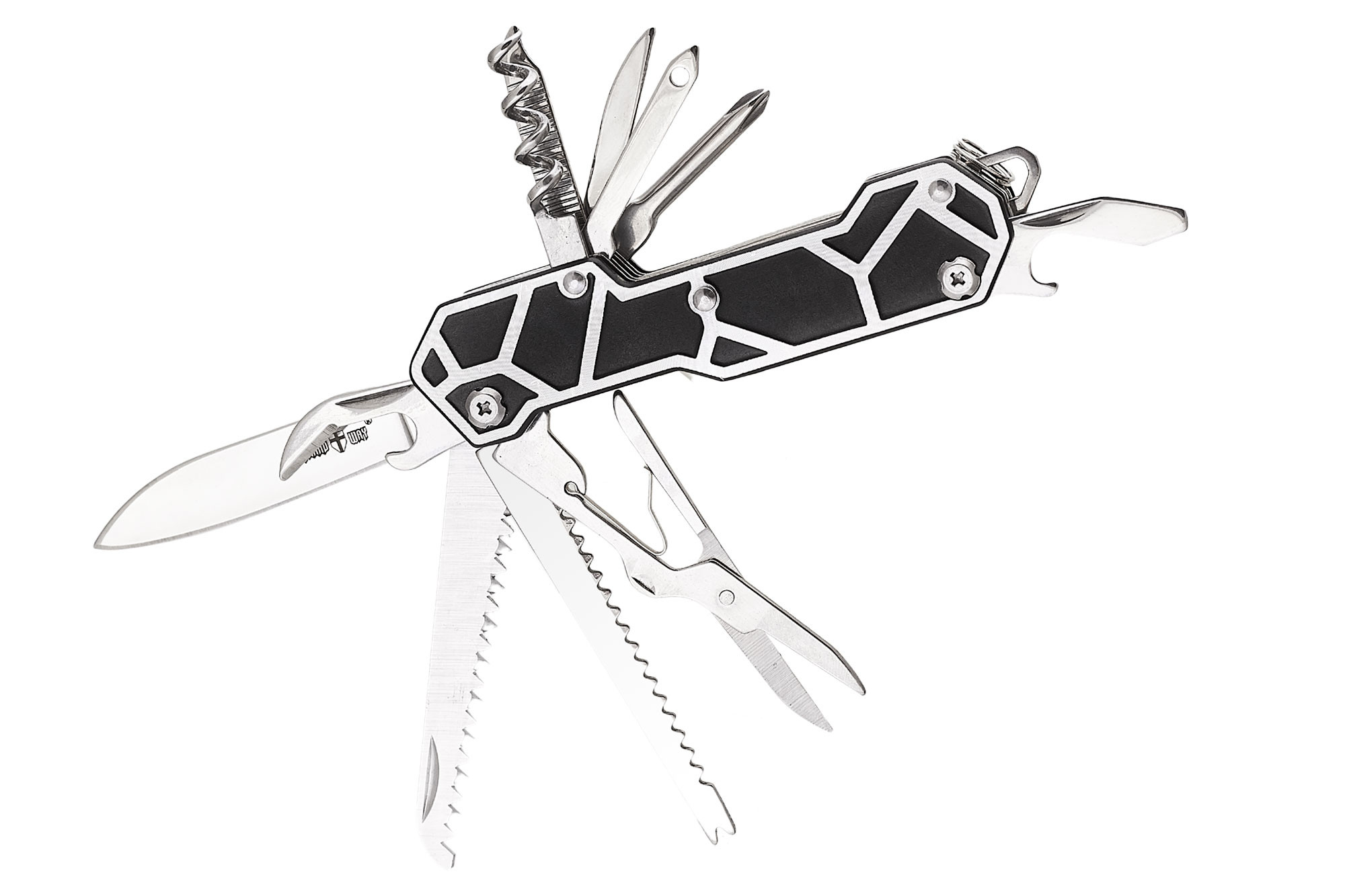 | Дополнительная информация: | Функционал: нож, консервный нож, бутылочная открывалка, плоская отвертка, ножницы, пила, рыболовный инструмент, крестовая отвертка, штопор, шило, маникюрный инструмент, скорняжный инструмент |