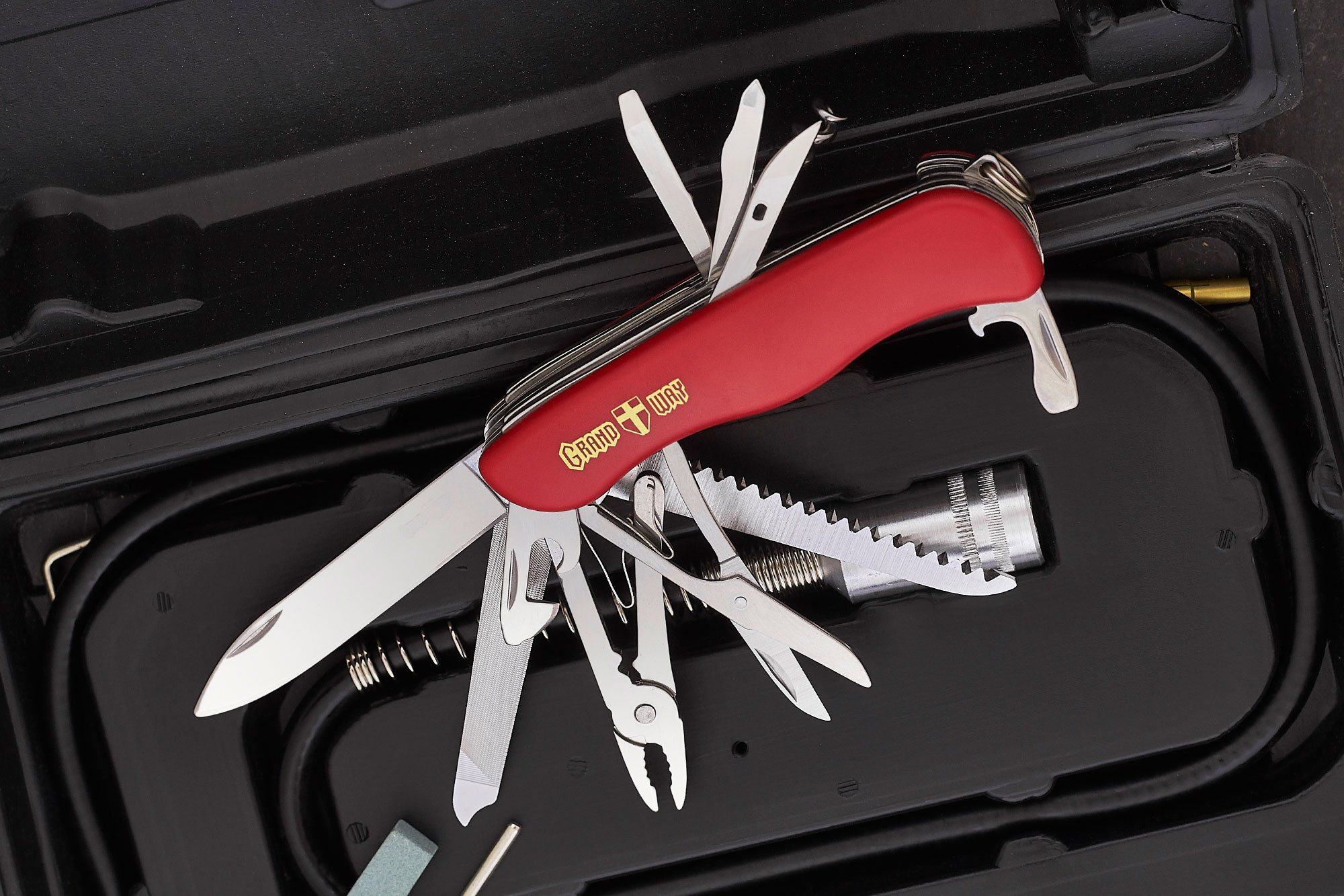 Grand Way 60011 – багатопредметний складаний ніж функціонального призначення. Він відрізняэться досить великим набором інструментів. До того ж, одним з плюсів моделі є поєднання невеликої ваги та компактності.