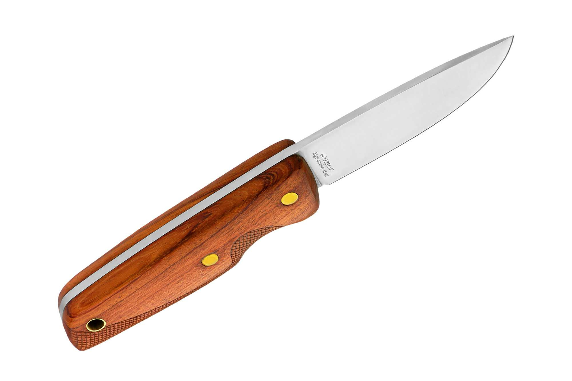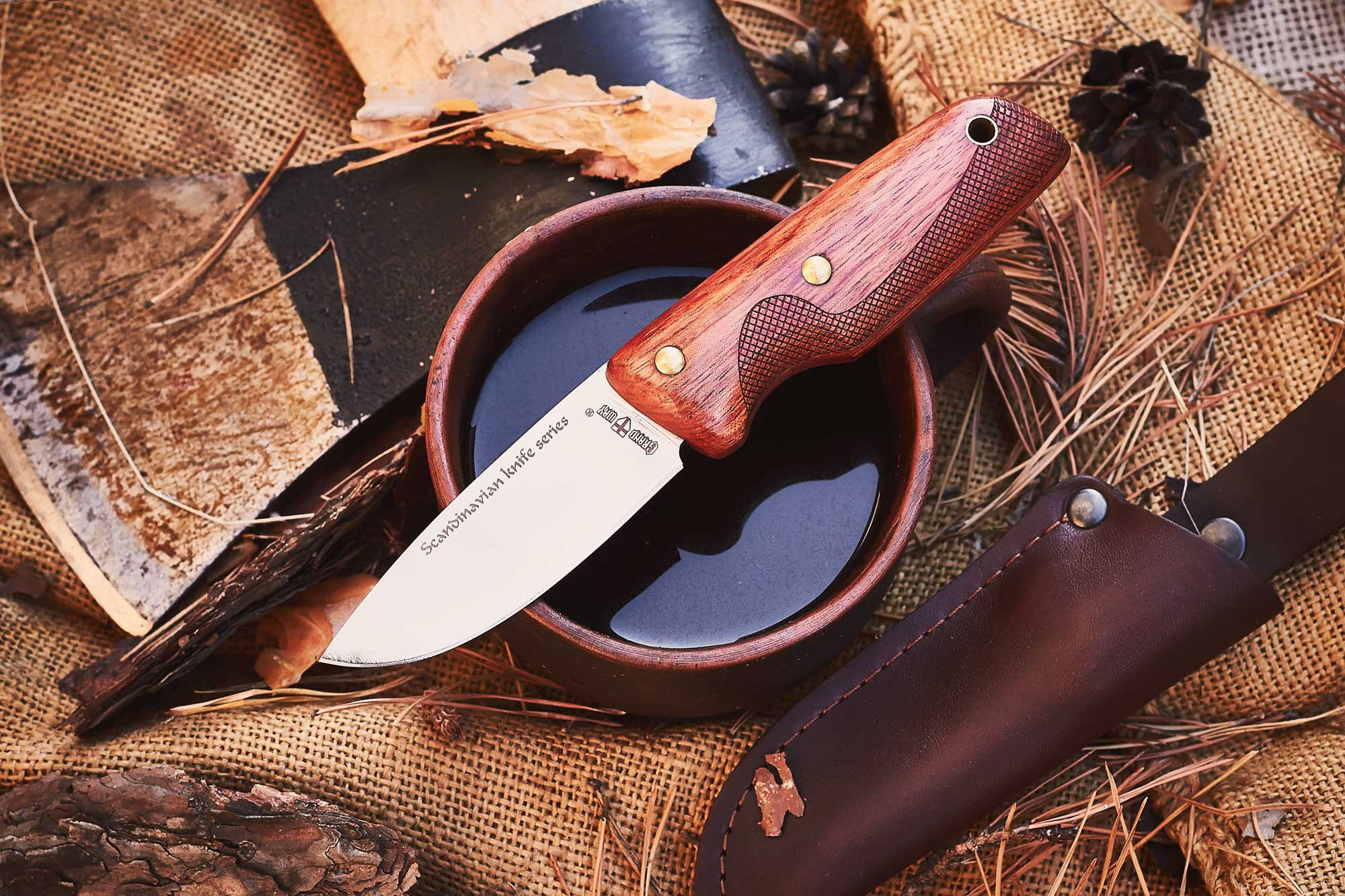 Компактний та міцний ніж скандинавського типу із сучасним клинком із високоякісної нержавіючої сталі марки 8Cr13MoV. Збалансований склад цієї сталі забезпечує тривалу роботу без заточування, хорошу стійкість до іржі та високу міцність, а якісне заводське заточування – впевнений різ.