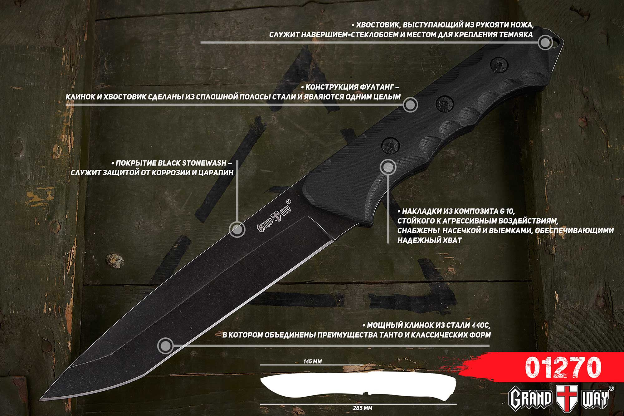 Нескладной нож 01270 – это сочетание красоты и изящества, присущих танто-подобным и тактическим ножам. Хорошее решение для тех ситуаций, когда необходим полноразмерный нож-ломик. Клинок из стали марки 440С, с толщиной лезвия почти 4 миллиметра (3,6 мм, если точно) только способствует этому. Покрытие клинка – black stonewash – подтверждает то, что внешний вид соответствует сути, а также служит неплохой защитой от коррозии и царапин.