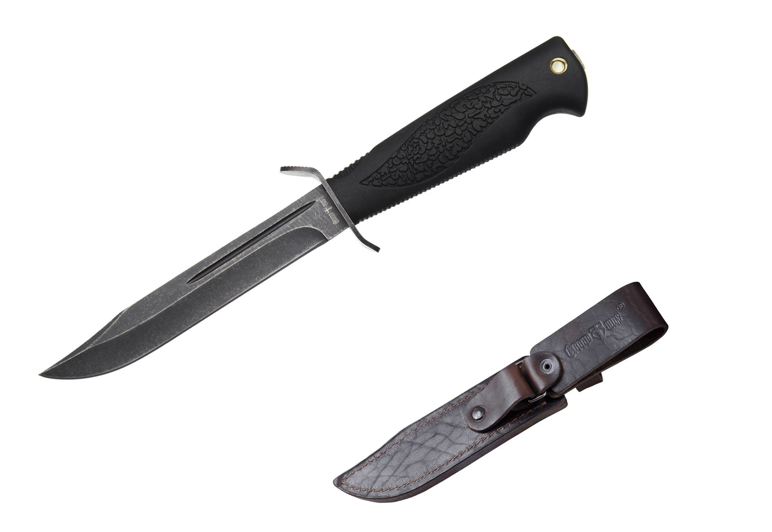 Руків’я ножа виконане з гумопластику. Що теж відходження від оригіналу, але тільки на кращий, більш прогресивний бік. Сучасний матеріал тільки підвищує ергономічні якості рукояті та чудово переносить вплив факторів навколишнього середовища.
