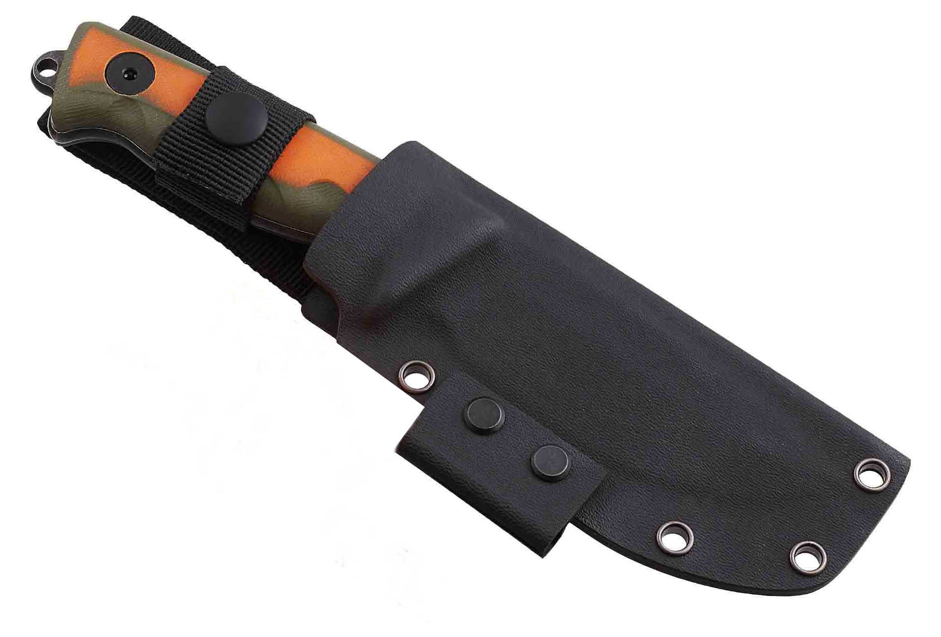 Ніж комплектується сучасними піхвами з надійного кайдекса, які надійно закріплюються на спорядженні або одязі за допомогою замка-кріплення тек-лок.