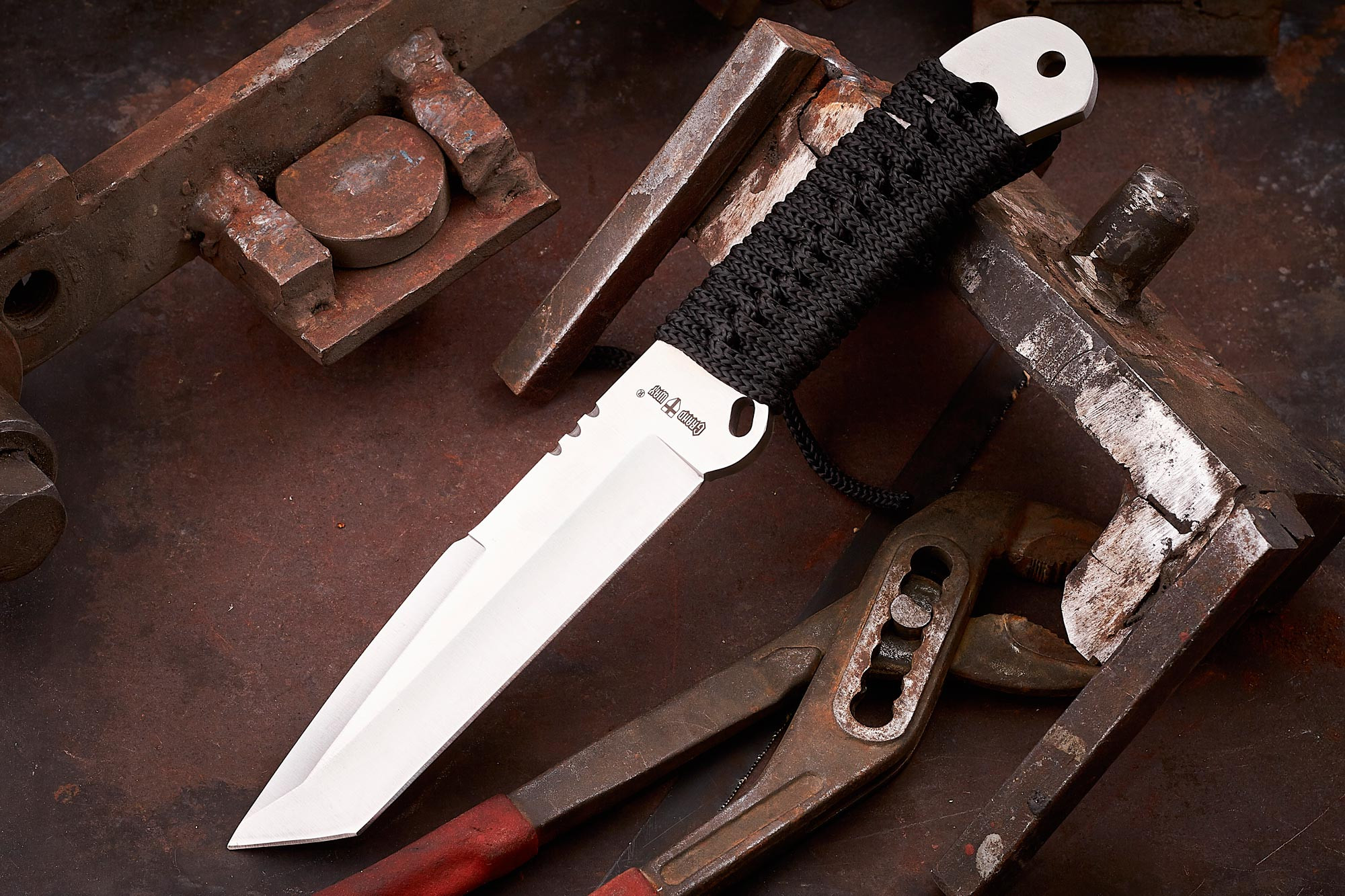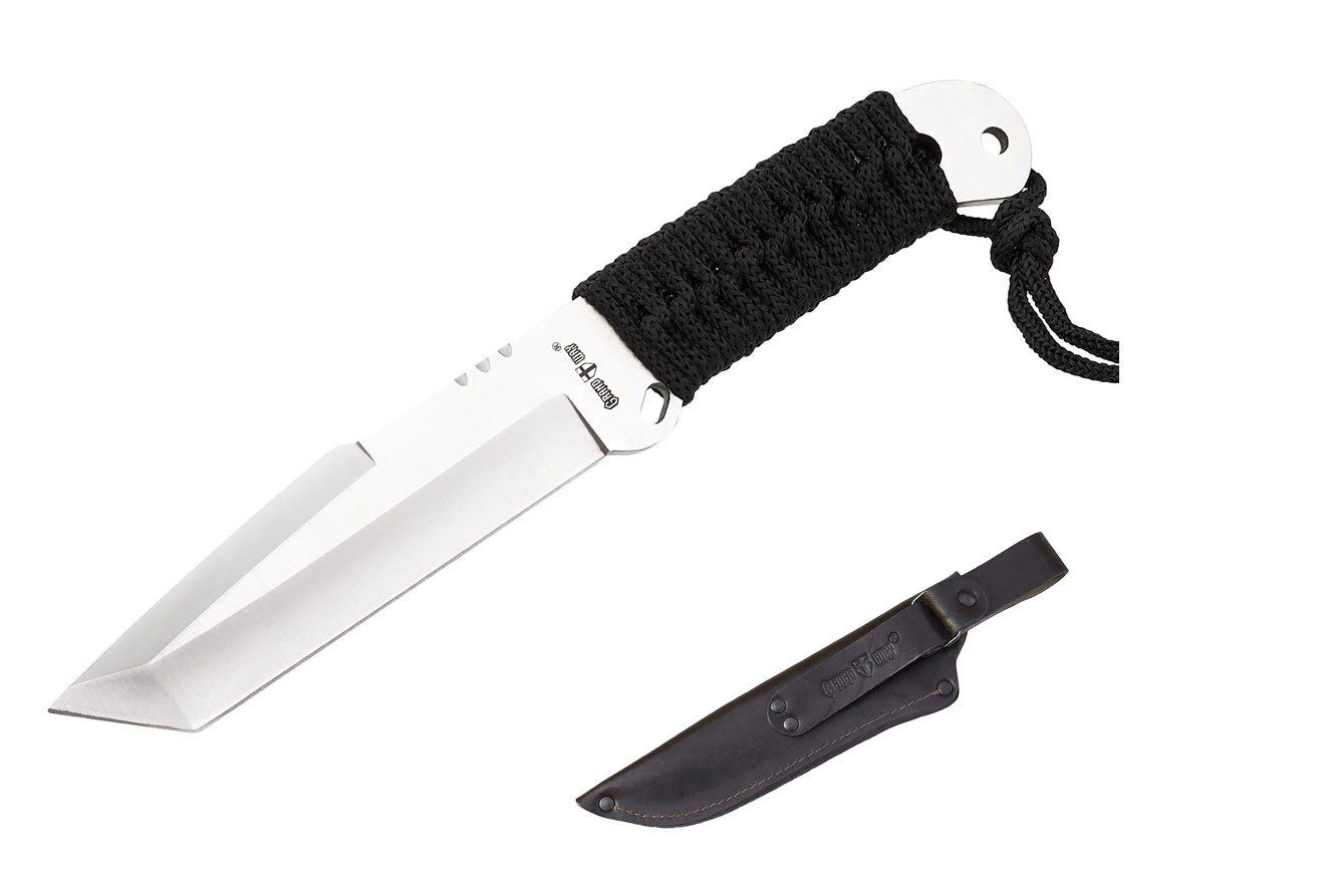 Цікавою особливістю руків’я є помітно опукла п'ята клинка, що утворює собою деяку подобу гарди. У ній так само є отвір, що дозволяє протягнути в нього закріплений на наверші темляк і таким чином додатково зафіксувати руку, не даючи їй зісковзнути або випустити ніж при виконанні різних робіт, пов'язаних з навантаженнями.